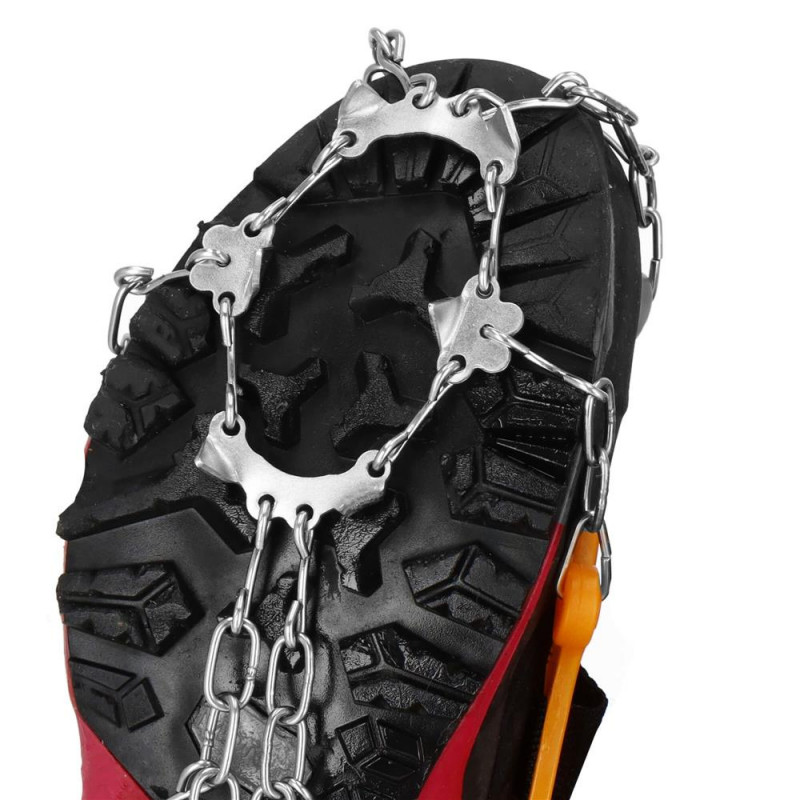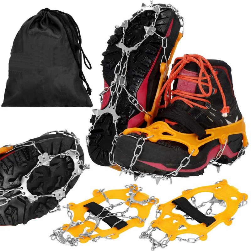 Scurta descriere Crampoane antiderapante pentru incaltaminte, concepute pentru mers sigur pe zapada si gheata. Realizate din TPE flexibil si otel rezistent, ofera stabilitate si aderenta sporita in sezonul rece. Setul include benzi cu arici pentru fixare suplimentara si husa cu snur pentru depozitare.