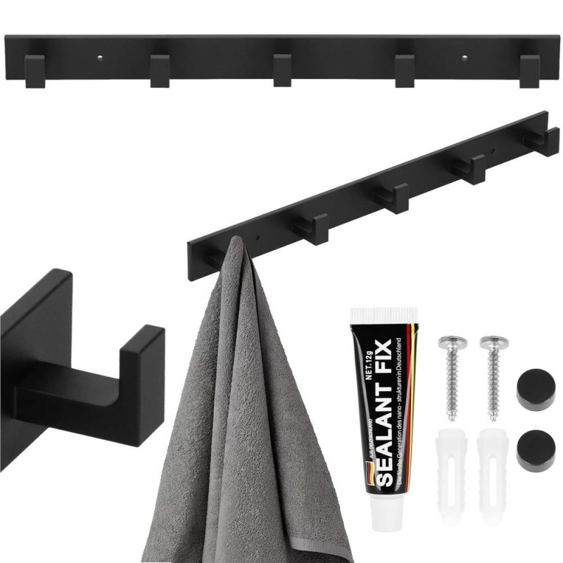 Setul contine: Carlig, lipici, 2 suruburi (lungime 28 mm), 2 dopuri negre, autocolante pentru montare adeziva Umerasul negru din aluminiu este solutia perfecta pentru organizarea spatiului din holul dumneavoastra. Extrem de robust si echipat cu carlige de depozitare, va fi cu siguranta completarea perfecta pentru amenajarea holului dvs. Nu mai ezitati nici o clipa si descoperiti