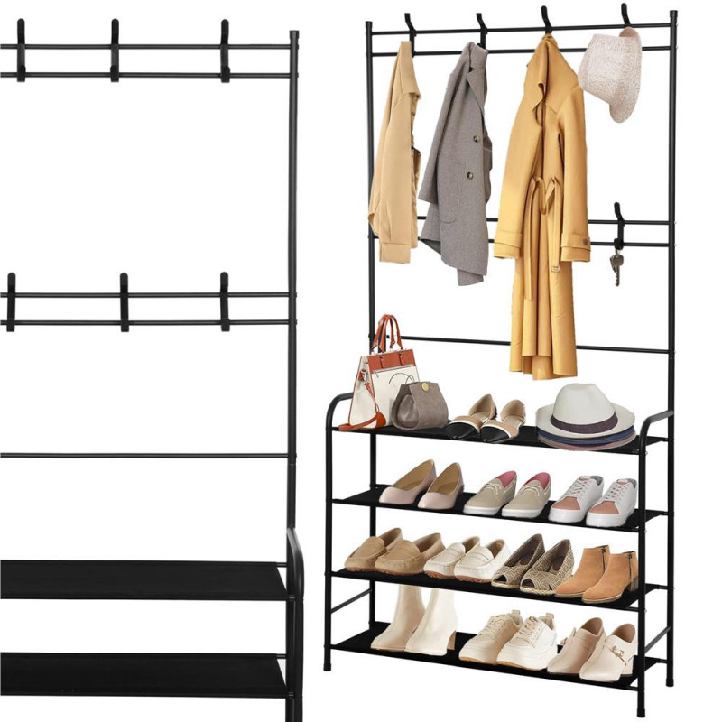 Va functiona excelent si in hol/hol. Cu opt umerase duble pe doua niveluri diferite si patru rafturi care pot fi folosite pentru a depozita pantofi, umerasul nostru ofera suficient spatiu pentru a depozita haine de diferite marimi si lungimi. Umerasele sunt mobile - pot fi deplasate de-a lungul tuburilor orizontale si pot fi scoase si schimbate - asezati pe fiecare nivel cate umerase aveti nevoie!