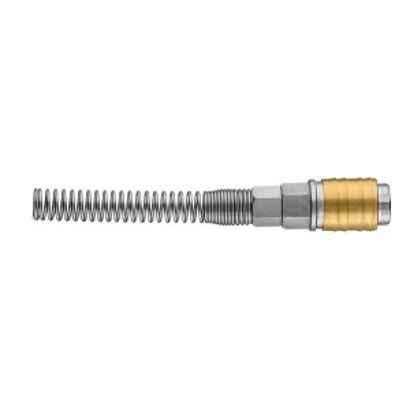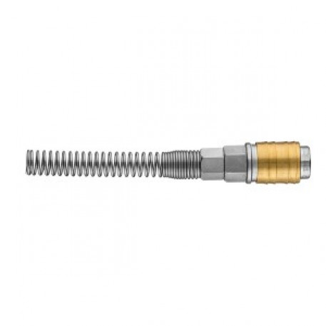 Conector rapid pentru compresorul NEO (ref. 12-602) cu iesire pentru furtun, fabricat din otel inoxidabil si alama de inalta calitate. Diametrul exterior 10 mm, diametrul interior 8 mm. Asigura o conexiune sigura la presiuni de pana la 16 bar. Datorita arcului, furtunul de presiune se indoaie usor si nu se prabuseste chiar in spatele racordului. Calitatea inalta a produsului este confirmata de certificatul CE. Marca NEO raspunde asteptarilor profesionistilor.