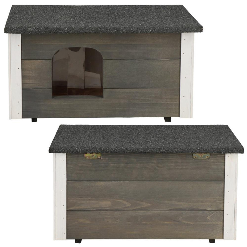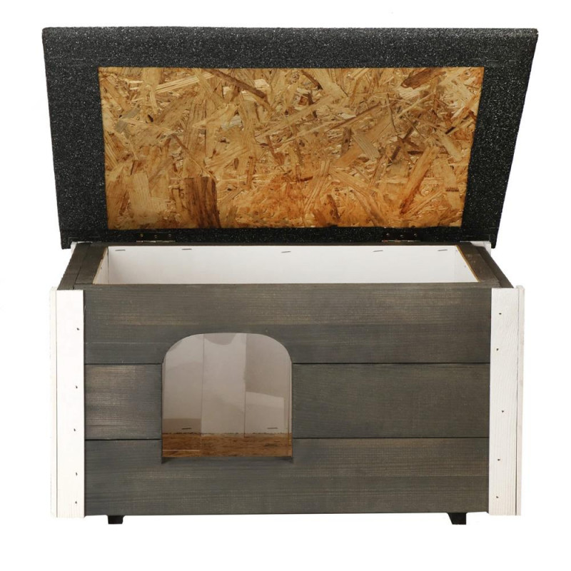 Izolatie suplimentara din polistiren pentru confort termic maxim Un sistem de sustinere in doua trepte pe picioare din lemn masiv garanteaza stabilitate si izolatie termica. Cainele dvs. va sta mereu la caldura, iar structura este pregatita pentru o varietate de conditii meteorologice. O perdea transparenta la intrare nu este doar un plus decorativ. Actioneaza ca o bariera termica, protejand impotriva vantului si pastrand caldura in interior. Copertina cu balamale duble permite o deschidere usoara din exterior, oferind cainelui dvs. un sentiment de intimitate si libertate. In plus, cusca este captusita cu polistiren in interior pentru un confort termic si mai mare.