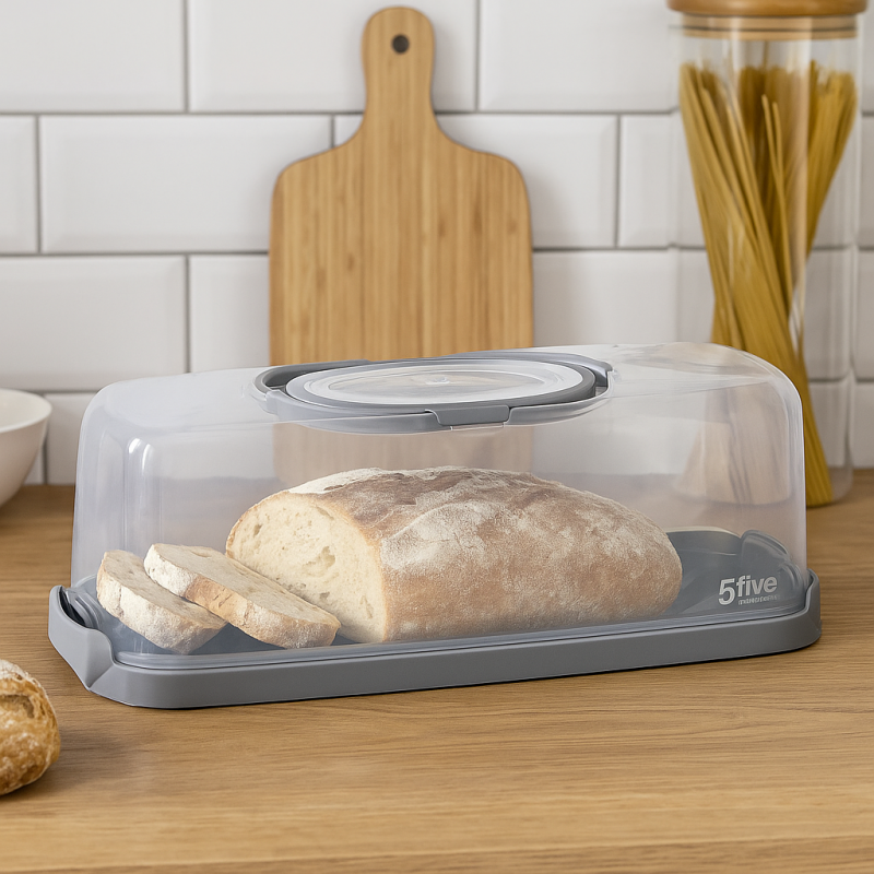 Scurta descriere Cutie din polipropilena destinata depozitarii painii sau produselor de patiserie. Designul modern si culoarea gri neutra o fac potrivita pentru orice bucatarie. Asigura o depozitare igienica, protejand continutul de umezeala si factori externi.