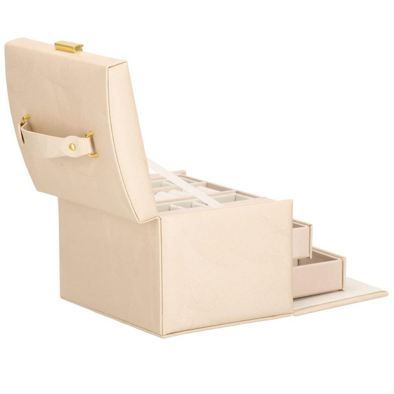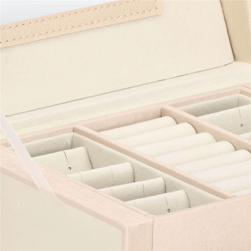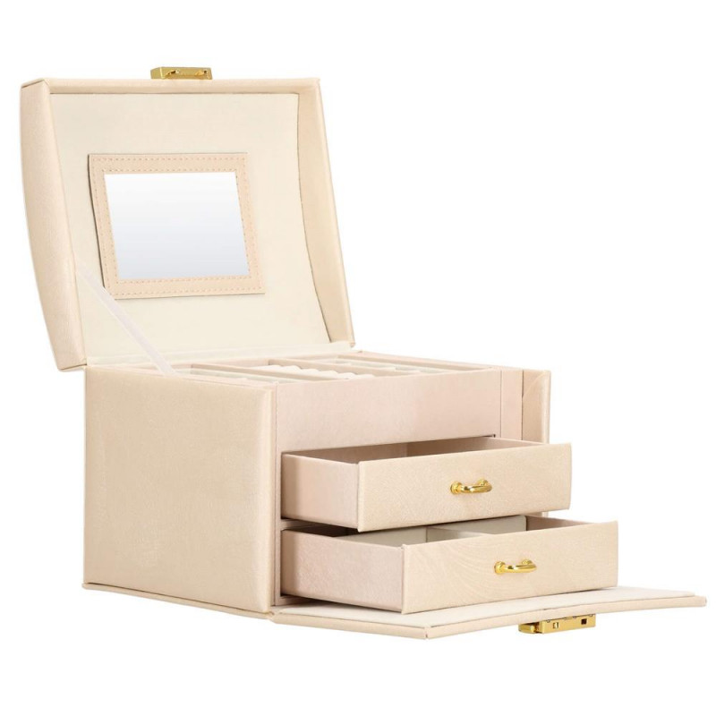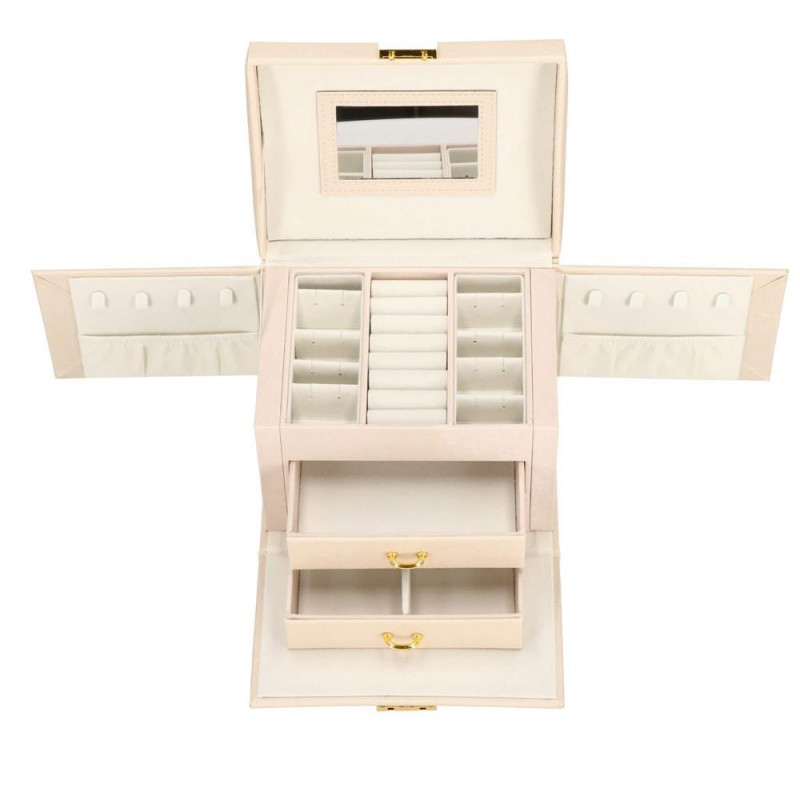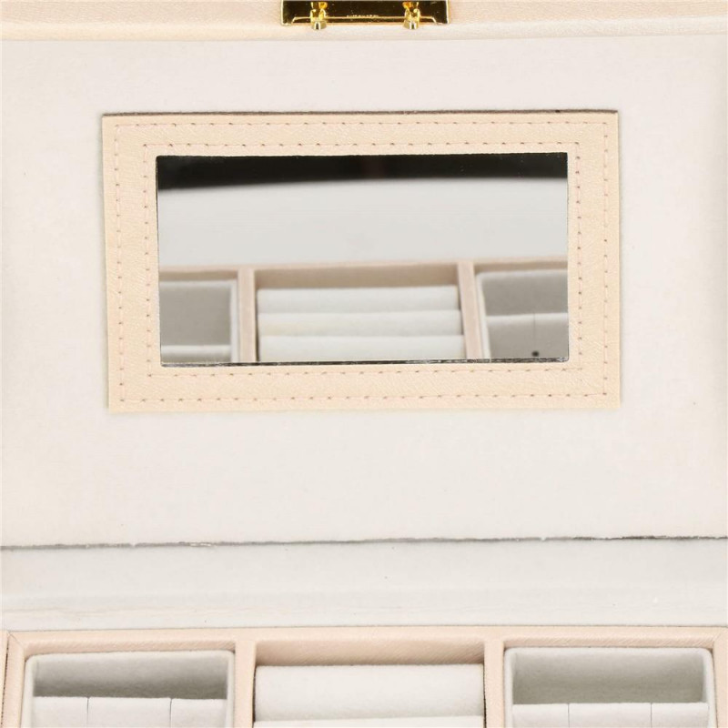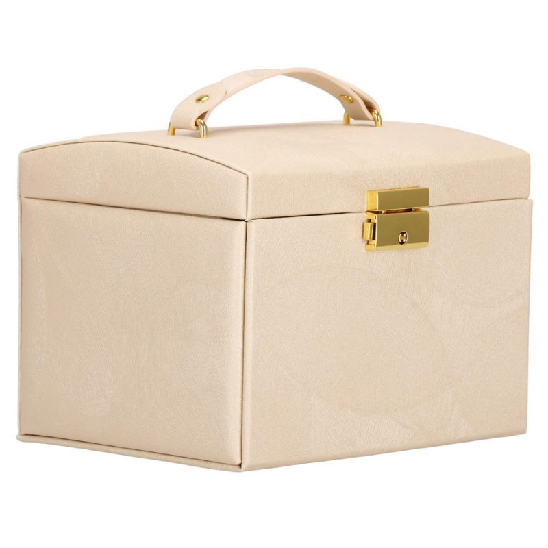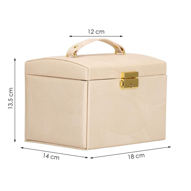 LOCUL PERFECT PENTRU BIJUTERII Fiecare femeie iubeste bijuteriile. Le poate purta in fiecare zi, la petreceri, la ocazii speciale in doi. Dar unde sa le pastrezi pentru ca nimic sa nu se piarda si sa se incurce? O cutie de bijuterii este o idee grozava pentru depozitarea accesoriilor valoroase! Cu ajutorul ei, totul va fi intotdeauna la locul lui. Cutia de bijuterii va va permite sa organizati corect locul pentru accesoriile de styling. Isi va gasi locul in dulap, masa de toaleta sau comoda. Avand toate bijuteriile tale preferate intr-un singur loc, poti uita sa cauti un al doilea cercel care s-a ratacit pe undeva sau sa desfaci colierul.Cutia mare are o deschidere foarte intuitiva. Cu toate acestea, daca nu doriti ca niciunul dintre membrii gospodariei sa poata deschide cutia cu continutul valoros, inchideti-o cu o cheie pe care o puteti purta cu dvs. peste tot! In plus, la deschiderea acestuia, nu trebuie sa va faceti griji cu privire la inchiderea automata a carcasei, pe una dintre laturile acesteia existand o ranforsare suplimentara care mentine capacul stabil in pozitie verticala. SPECIFICATII
