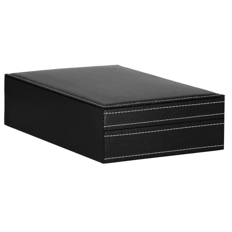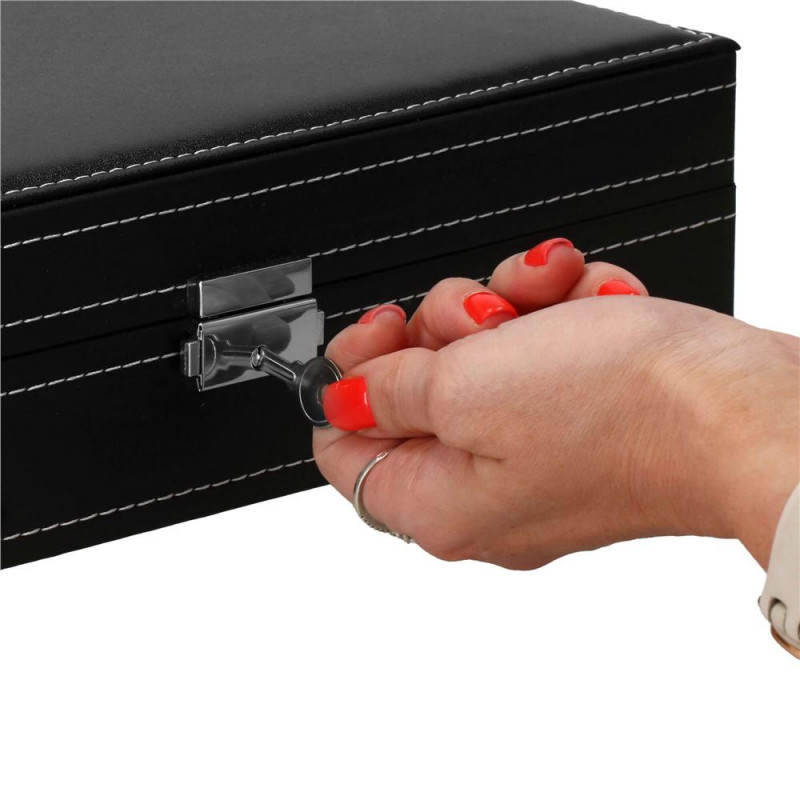 UN LOC ELEGANT SI PRACTIC PENTRU ACCESORII SI CEASURI Fiecare dintre noi - atat femei, cat si barbati, avem ceasuri, bratari si din ce in ce mai des bratari fitness si ceasuri inteligente in colectia de bijuterii si accesorii. Cel mai adesea, aceste articole sunt depozitate in locuri aleatorii si sunt adesea zgariate sau pur si simplu greu de gasit. Solutia ideala si din ce in ce mai populara sunt cutiile de depozitare dedicate ceasurilor si bijuteriilor. Lasa accesoriile sa iti exprime stilul, iar alegerea lor in fiecare dimineata va fi mai usoara. DESIGN EXCLUSIV Carcasa cutiei pentru ceasuri este realizata cu atentie la cele mai mici detalii. Se prezinta foarte eficient, elegant si pe langa functia sa cunoscuta, va fi fara indoiala un decor atractiv intr-o forma clasica, care va atrage privirea si va decora imprejurimile. Organizator sub forma unei cutii solide, in interior are o captuseala din material velur extrem de moale si delicat la atingere. In interiorul compartimentelor se gasesc perne, modelate pentru a gazdui bratari si curele. Fiecare ceas isi va gasi locul si datorita interiorului impartit in compartimente, nu se va freca de celelalte si nu se va zgaria. Puteti plasa cele mai valoroase accesorii in ele.Daca nu ai suficiente ceasuri pentru a umple interiorul casetei, poti scoate pernele dedicate formei de ceasuri si bratari si le poti folosi ca compartimente pentru alte accesorii - butoni, inele, cercei sau pandantive. AVANTAJELE PRODUSULUI Produs de clasa - se distinge prin calitatea sa comparativ cu oferte similare Perfect pentru un cadou - atat pentru femei, cat si pentru barbati Fabricat din cele mai bune materiale Prezentarea extrem de eficienta Clasic in forma sa Decorat cu accesorii de finete si elegante Captuseala din velur extrem de moale si placuta la atingere Perne practice detasabile - pentru ca ceasurile si bratarile tale sa isi pastreze forma si sa arate impecabil Va permite sa pastrati ordinea printre accesorii Este modular - scoate pernele din ea si foloseste compartimentele pentru alte accesorii PARAMETRII: