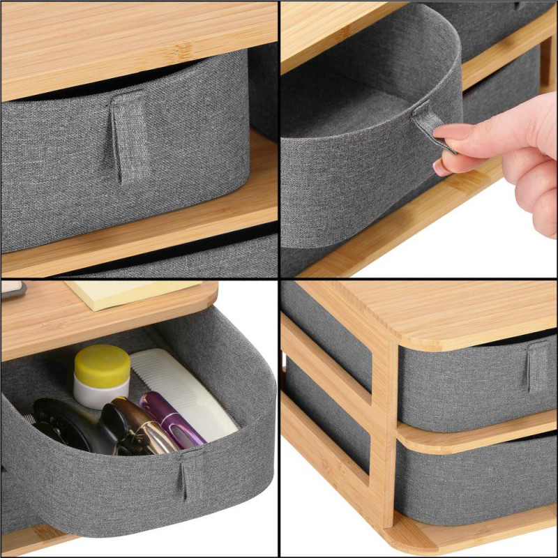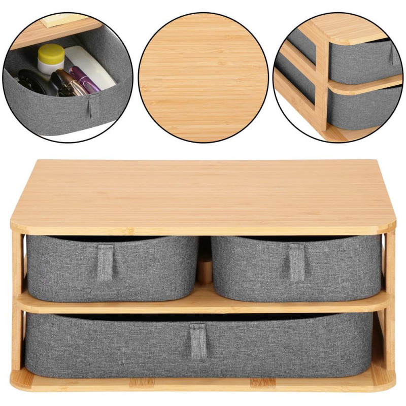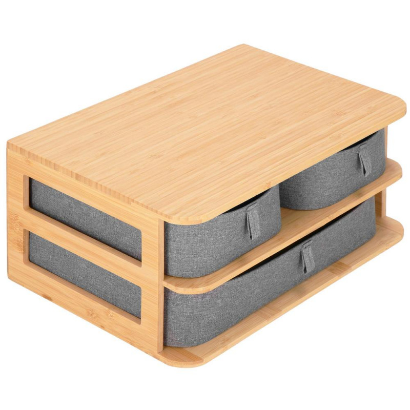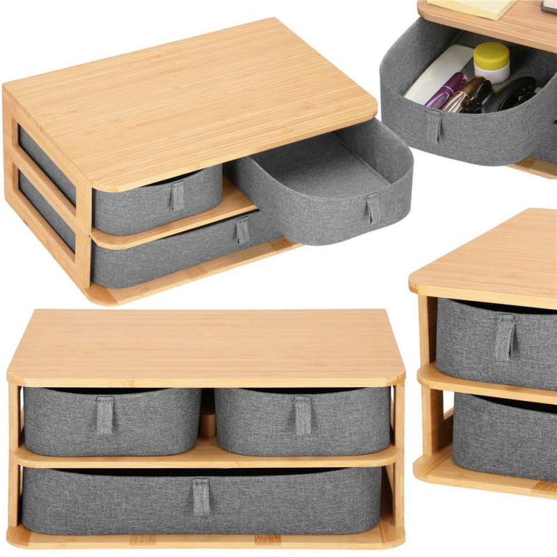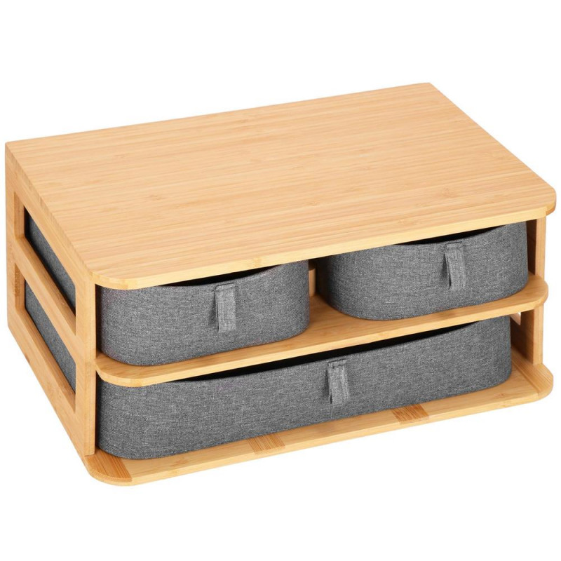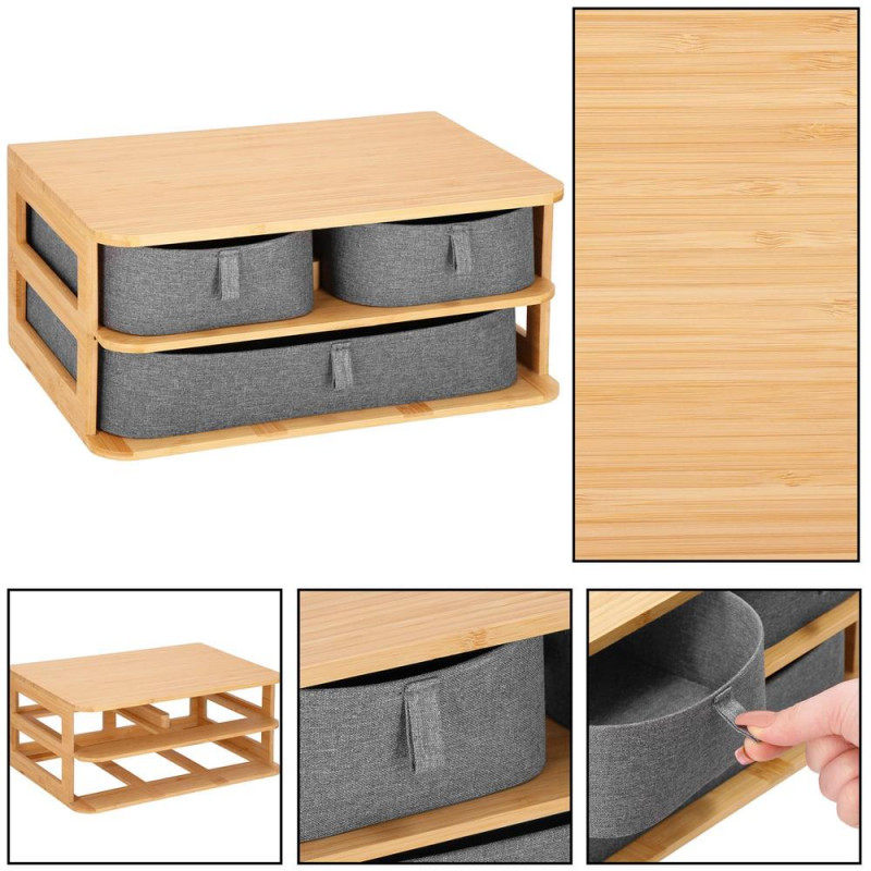 Setul include: corp din bambus + 3 recipiente din material (sertare), rigidizate