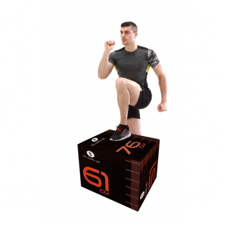 Cutia pliometrica cu trei inaltimi este utilizatata pentru exercitiile functionale. Cu ajutorul acesteia se pot lucra mai multe grupe de muschi.Prin simpla rotire te poti antrena la trei inaltimi diferite: 51 cm, 61 cm si 76 cm. Pentru o mai mare stabilitate, structura interioara este din lemn, iar pentru a reduce riscul de ranire in caz de caderi, cutia este invelita in spuma.Dimensiune: 51 X 61 X 76 cm Greutate: 20 kg Culoare: negru cu portocaliu.Material: lemn, spuma EVA, acoperire din vinil. Greutate suportata: 120 kgProducator: Sveltus