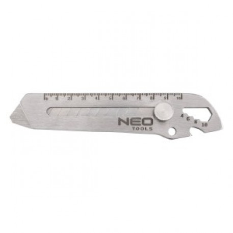 Cutitul cu lama pliabila NEO TOOLS 6 in 1 multifunctional 63-713 este o unealta multifunctionala 6 in 1 care, pe linga cutitul cu lama pliabila de 18 mm lungime, include si o cheie practica hexagonala pentru suruburi: 4-6-8-10 mm, deschizator de sticle, deschizator de conserve, rigla si surubelnita cu cap plat. Corpul este fabricat din otel inoxidabil si prezinta o lungime totala de 155 mm. Unealta NEO TOOLS se va dovedi utila pentru taiere, subtaiere, deschiderea dozelor, sticlelor sau desurubarea suruburilor mici. Este un produs la indemina cu posibilitatea multor aplicatii.