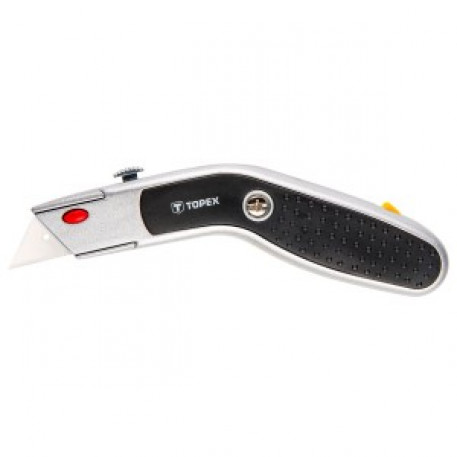 Cutit cu lama trapezoidala TOPEX (ref. 17B160) foarte util pentru lucrari mecanice si bricolaj. Corpul metalic asigura o durata de viata lunga a sculei. Un avantaj suplimentar este inlocuirea lamei fara scule. Forma ergonomica si insertia antiderapanta din maner asigura siguranta si confort in timpul lucrului. Setul include doua lame suplimentare in magazie. Marca TOPEX se adreseaza pasionatilor de bricolaj.