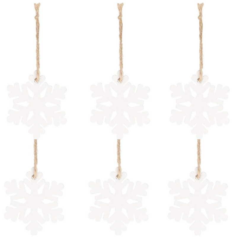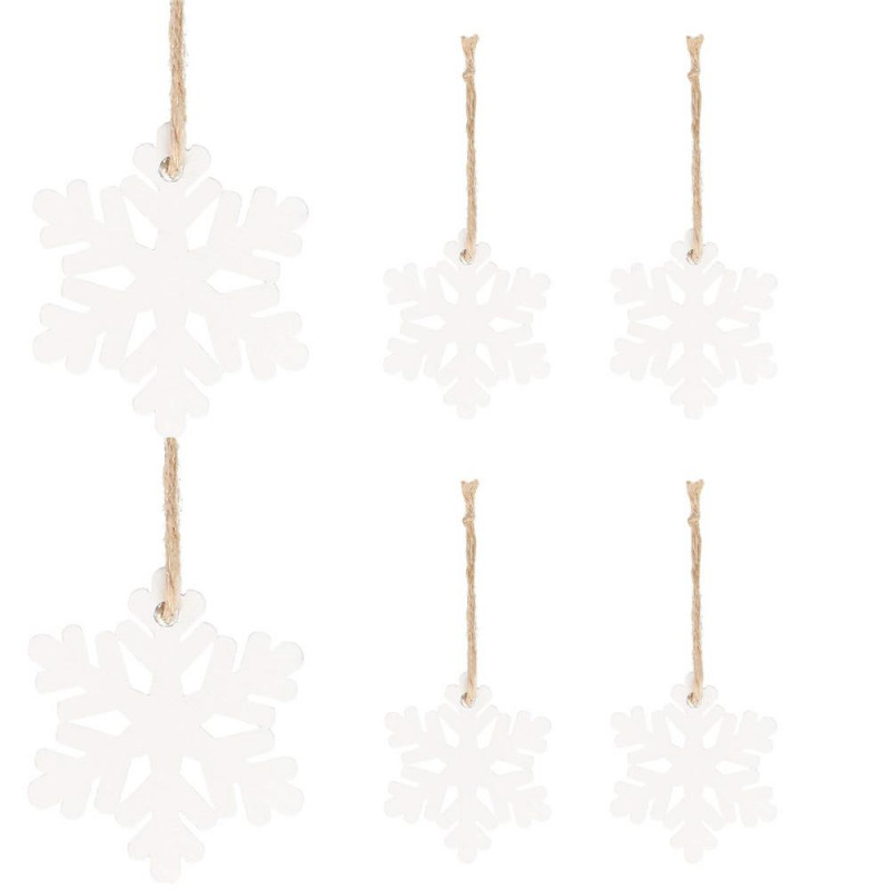 Grosime: 2,5 mm Craciunul, ca si intreaga perioada de iarna, este o perioada magica, plina de caldura si de o atmosfera unica, creata datorita unui spectacol de decoratiuni fabuloase si constelatii luminoase incantatoare. Pandantivele frumoase din lemn in forma de fulgi de zapada va vor decora frumos bradul de Craciun. Setul este format din 6 fulgi de zapada cu decupaje frumoase. Pandantivele sunt insotite de o sfoara pentru a le agata pe crengile bradului de Craciun.