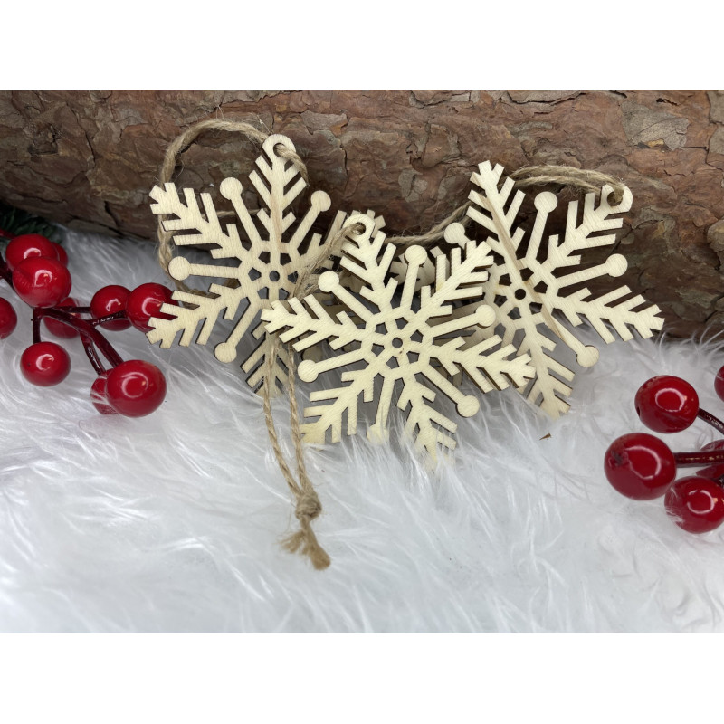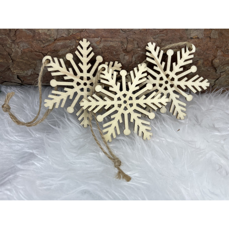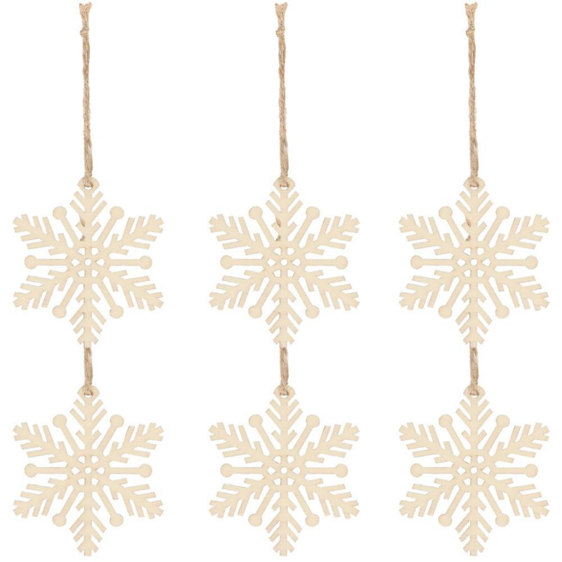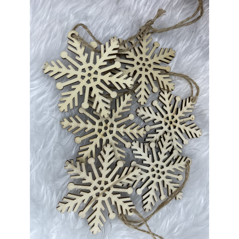 Avantaje: snururi de iuta care nu se sparg, GRATUIT pentru agatat Craciunul, ca si intreaga perioada de iarna, este o perioada magica, plina de caldura si de o atmosfera unica, creata datorita unui spectacol de decoratiuni fabuloase si constelatii luminoase incantatoare. Pandantivele frumoase din lemn in forma de fulgi de zapada va vor decora frumos bradul de Craciun. Setul este format din 6 fulgi de zapada cu decupaje frumoase. Pandantivele sunt insotite de o sfoara pentru a le agata pe crengile bradului de Craciun.