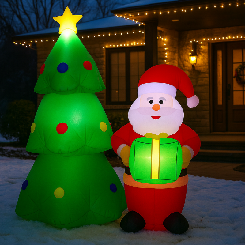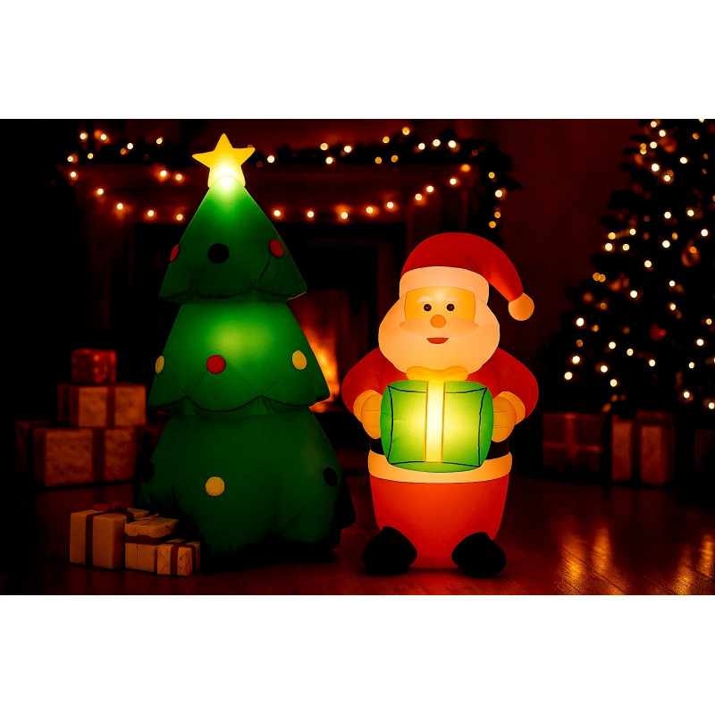 Scurta descriere Decoratiune gonflabila de Craciun ce infatiseaza un Mos Craciun cu cadou si un brad iluminat cu stea luminoasa. Realizata din poliester rezistent, este potrivita pentru exterior si interior, oferind un efect vizual spectaculos. Se monteaza rapid, este usoara si include tot necesarul pentru fixare.