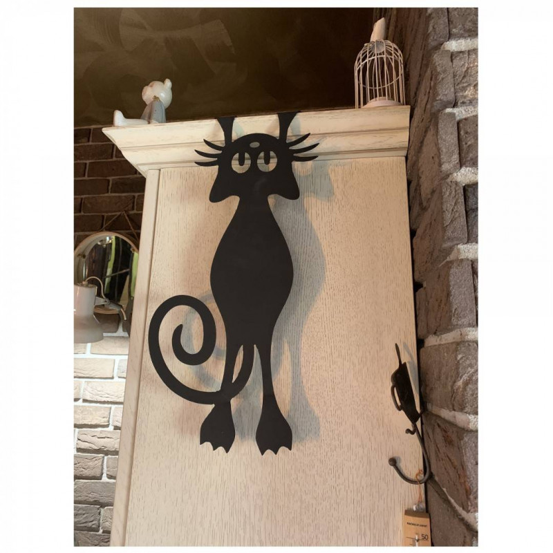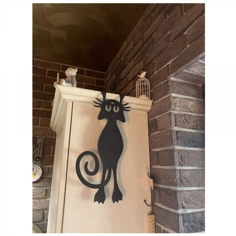 Decoratiune perete Krodesign Funny Cat, lungime 52 cm, negru