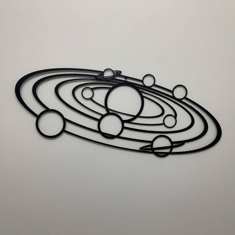 Decoratiune perete Krodesign Planets, diametru 80 cm, negru
