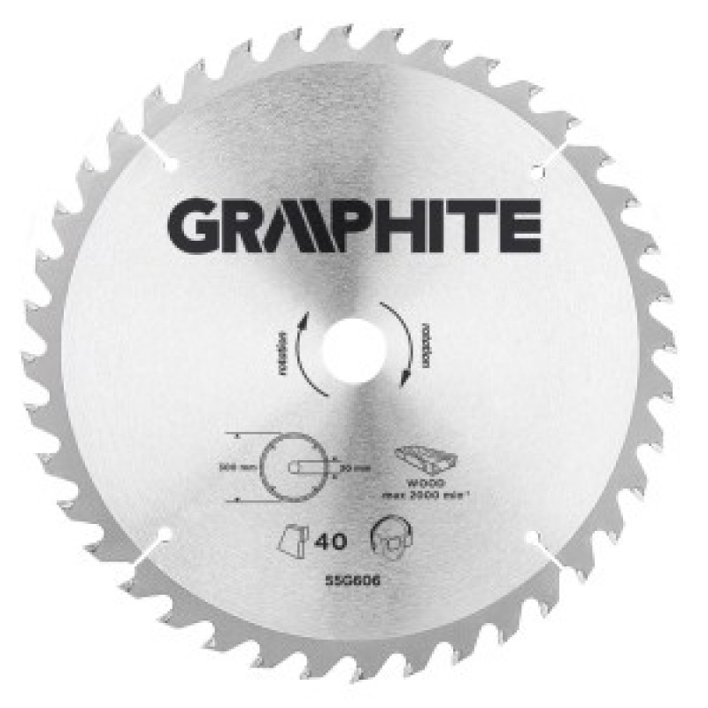 Disc de ferastrau cu placuta din aliaj dur GRAPHITE (cod 55H606) cu diametre 300 mm, realizat din aliaj de otel mangan MN65 cu rezistenta mare la temperatura si forma. Dintii cu placuta din aliaj dur YG6A permite la taierea voluminoasa a lemnului si a materialelor pe baza de lemn, cum ar fi placaj, PAL, MDF. Incluse in ambalaj, inelele de reducere permite utilizarea discului pentru mai multe modele de fierastraie.