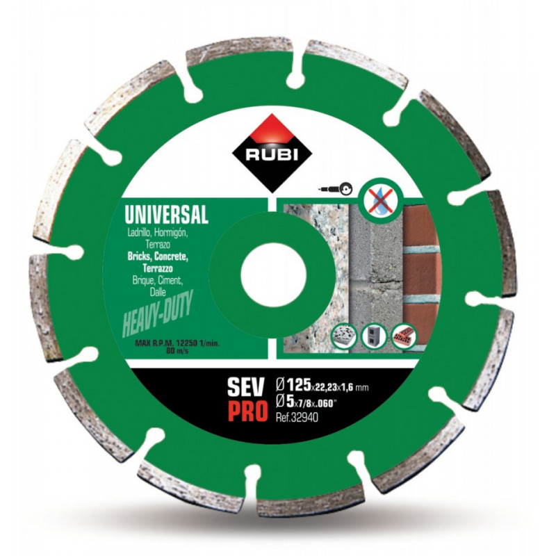 Disc diamantat segmentat pentru beton, caramida si alte materiale de constructii Rubi SEV PRO 125 (taiere uscata)
