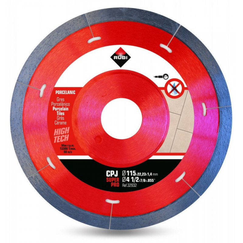 Disc diamantat cu segment continuu, J-slot, pentru portelan Rubi CPJ 115 SuperPro (taiere uscata)