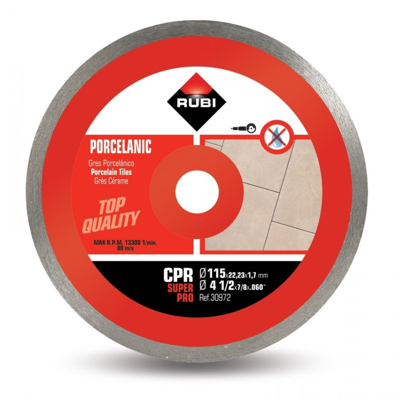 Disc diamantat cu segment continuu pentru gresie portelanata si placi ceramice portelanate Rubi CPR 115 SuperPRO (taiere uscata)