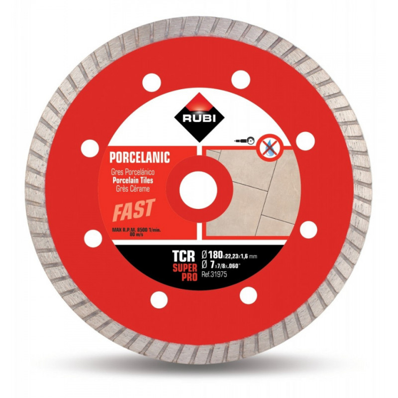 Disc diamantat special, cu segment Turbo pentru gresie portelanata si placi ceramice portelanate Rubi TCR 180 SuperPRO (taiere uscata)