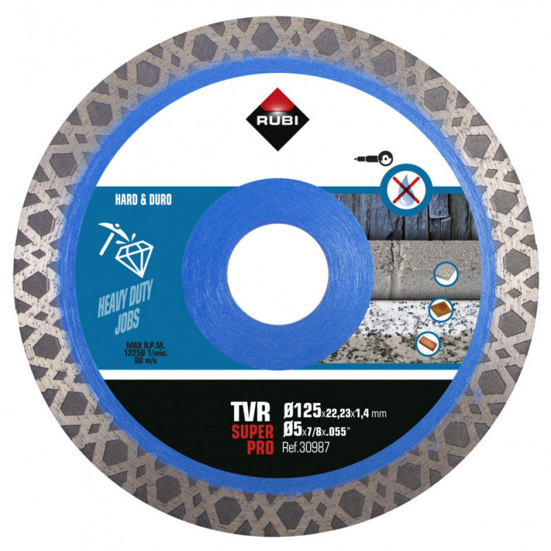 Disc diamantat cu segment Turbo Super Rapid (turbo-viper) pt. materiale foarte dure Rubi TVR 125 SuperPRO (taiere uscata)