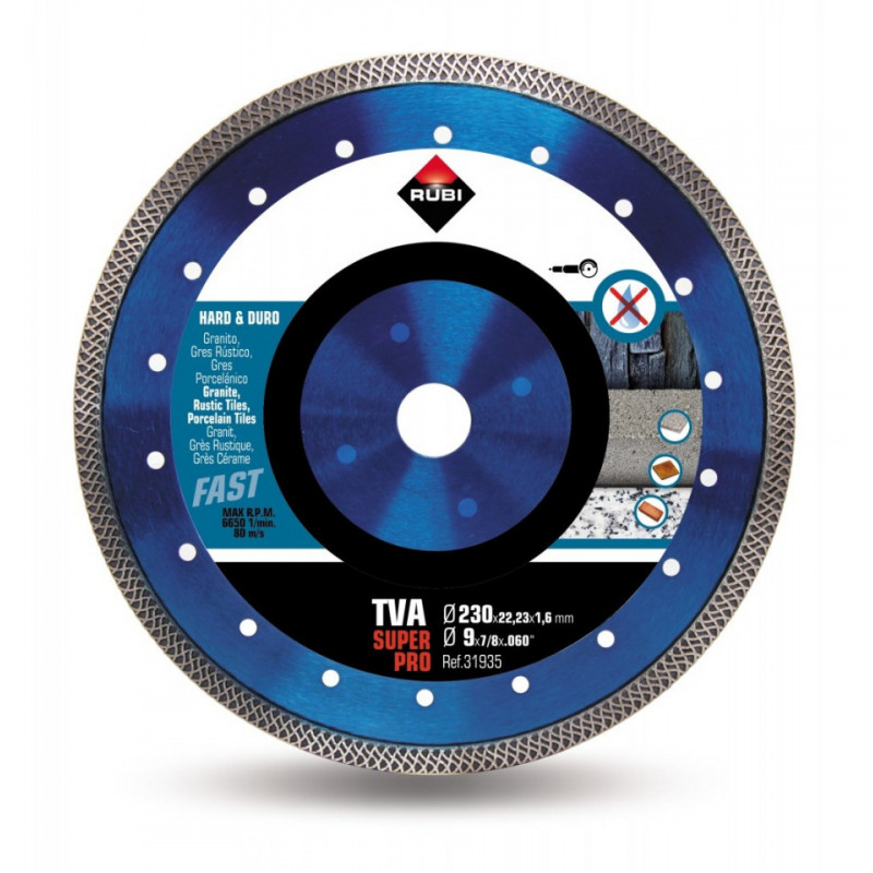 Disc diamantat cu segment Turbo Super Rapid (turbo-viper) pt. materiale foarte dure Rubi TVA 230 SuperPRO (taiere uscata)