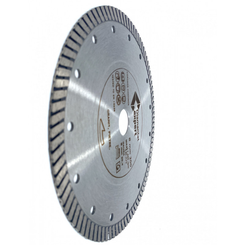 Disc diamantat pentru tăiere umeda pt. utilizarea cu masini de taiat - coroana turbo cu taieturi laser pt. granit, piatra și materiale dure.