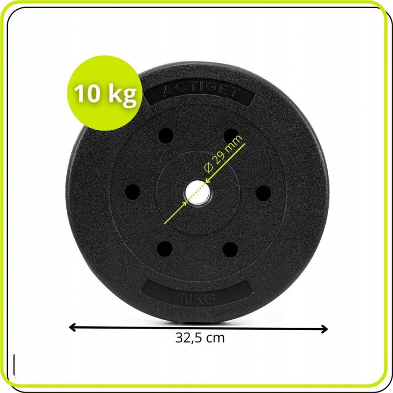 Scurta descriere: Discul de 10 kg este potrivit pentru antrenamente de forta acasa sau in sala. Diametrul interior de 29 mm il face compatibil cu majoritatea barelor si ganterelor standard. Umplutura bitumica reduce zgomotul in timpul utilizarii, iar invelisul din PP protejeaza podeaua si creste durabilitatea produsului. Greutatea de 10 kg permite cresterea progresiva a intensitatii si imbunatatirea tehnicii de executie.