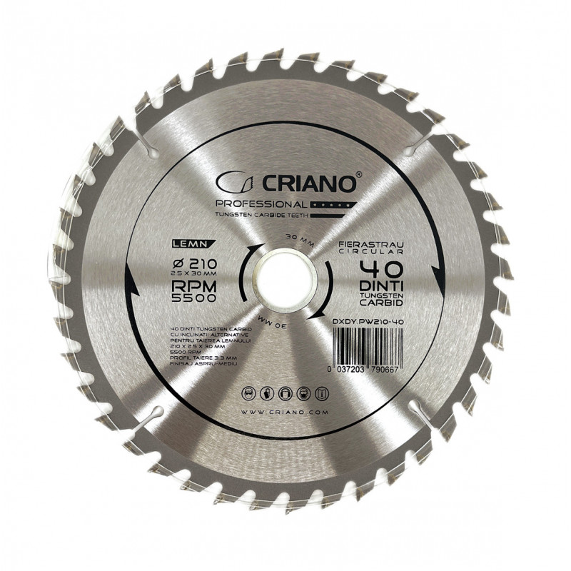 Disc Premium TCT - panza de fierastrau circular pentru taiat lemn, 210x30/25.4/20 cu 40 dinti din carbura de tungsten (vidia) - DXDY.PW210-40