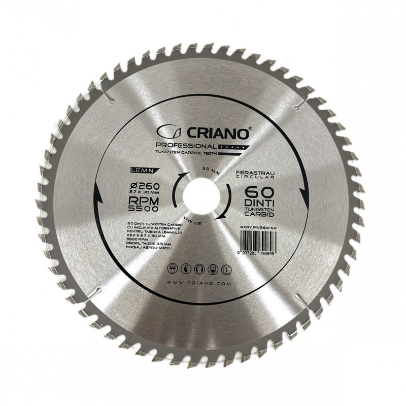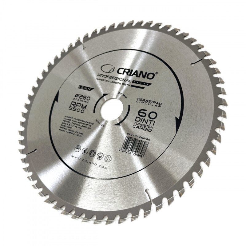 Disc Premium TCT - panza de fierastrau circular pentru taiat lemn, 260x30/25,4/20 cu 60 dinti din carbura de tungsten (vidia) - DXDY.PW260-60