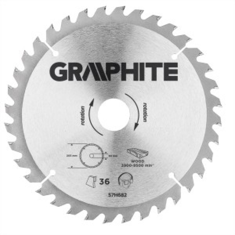 Disc de ferastrau cu placuta din aliaj dur GRAPHITE realizat din aliaj de otel mangan MN65 cu rezistenta mare la temperatura si forma. Dintii cu placuta din aliaj dur YG6A permite la taierea voluminoasa a lemnului si a materialelor pe baza de lemn, cum ar fi placaj, PAL, MDF. Incluse in ambalaj, inelele de reducere permite utilizarea discului pentru mai multe modele de fierastraie.