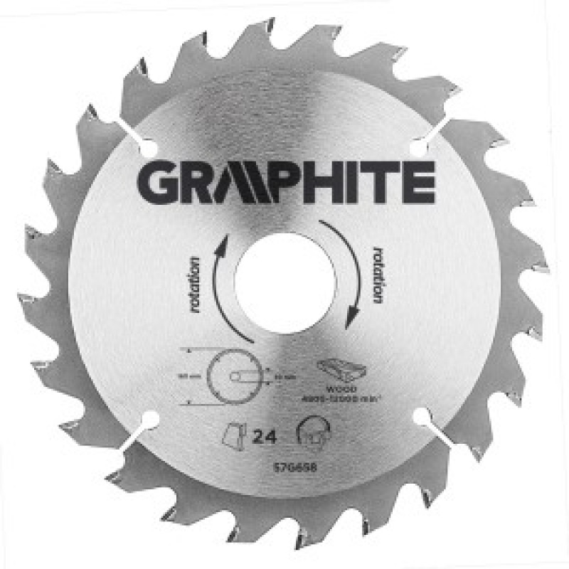 Disc de ferastrau cu placuta din aliaj dur GRAPHITE realizat din aliaj de otel mangan MN65 cu rezistenta mare la temperatura si forma. Dintii cu placuta din aliaj dur YG6A permite la taierea voluminoasa a lemnului si a materialelor pe baza de lemn, cum ar fi placaj, PAL, MDF. Incluse in ambalaj, inelele de reducere permite utilizarea discului pentru mai multe modele de fierastraie.