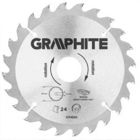 Disc de ferastrau cu placuta din aliaj dur GRAPHITE realizat din aliaj de otel mangan MN65 cu rezistenta mare la temperatura si forma. Dintii cu placuta din aliaj dur YG6A permite la taierea voluminoasa a lemnului si a materialelor pe baza de lemn, cum ar fi placaj, PAL, MDF. Incluse in ambalaj, inelele de reducere permite utilizarea discului pentru mai multe modele de fierastraie.