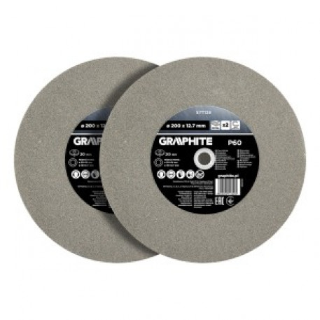 Discurile de rectificat 200 x 20/16/12,7 x 20 mm, P 60, 2 bucati 57T128 de la GRAPHITE au un diametru exterior de 200 mm si o grosime de 20 mm. Setul include 2 bucati de accesorii cu o gradatie de P 60. Diametrul interior al orificiului de montare este de 12,7 mm, dar sunt incluse reduceri: de la 20 la 16 mm si de la 16 la 12,7 mm. Discurile marca GRAPHITE vor functiona bine pentru utilizarea pe polizoarele de banc. Viteza maxima recomandata pentru acestea este de 3350 rpm. Acestea sunt utilizate pentru slefuirea metalului, ascutirea cutitelor, daltelor si a altor unelte de taiere, precum si pentru prelucrarea si nivelarea suprafetelor metalice.