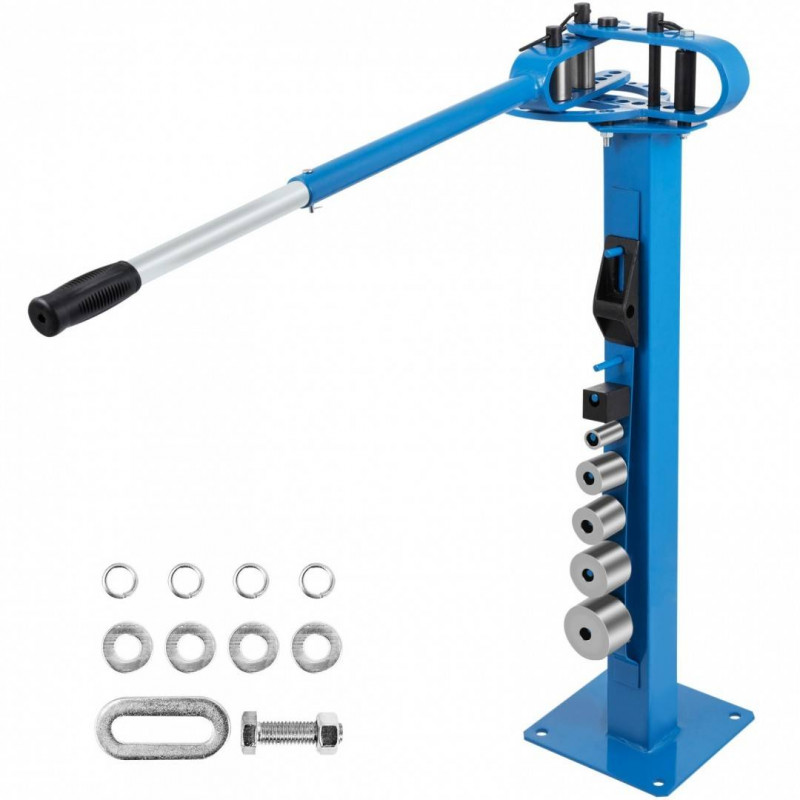 Indoitorul compact VEVOR are o capacitate de lucru de 1 inch pana la 3 inchi/2,54 cm - 7,62 cm. Este conceput pentru a face o varietate de indoiri pe material patrat sau plat. Manerul telescopic indoaie bara patrata cu o grosime de pana la 5/8 inchi/1,58 cm, cu o latime maxima de 1-15/16 in/4,9 cm. Bender vine cu sapte matrite: 1 in., 1-1/4 in., 1-1/2 in., 1-3/4 in., 2 in., 2-1/2 in. si 3 in. O baza pregaurita ii permite sa fie montat pe camioane de lucru, tractoare sau orice podea din beton.