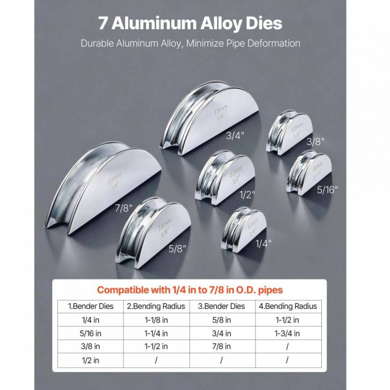 de la 1/4 inch la 7/8 inch (6 pana la 22 mm). Masina noastra de indoit tuburi