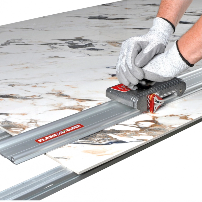 3) apasati pe glisiera astfel incât sa creasca aderenta de material, iar roata de taiere, care se roteste in jos, va taia tigla/placile chiar in momentul in care glisiera este miscata in directia preferata (impingere sau tragere).