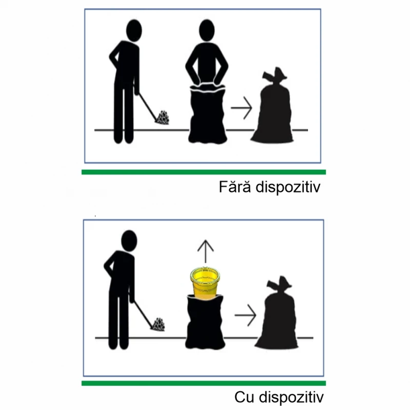 Compatibilitate cu sacii: Proiectat pentru saci de 50x80 cm, compatibil și cu saci mai mari.