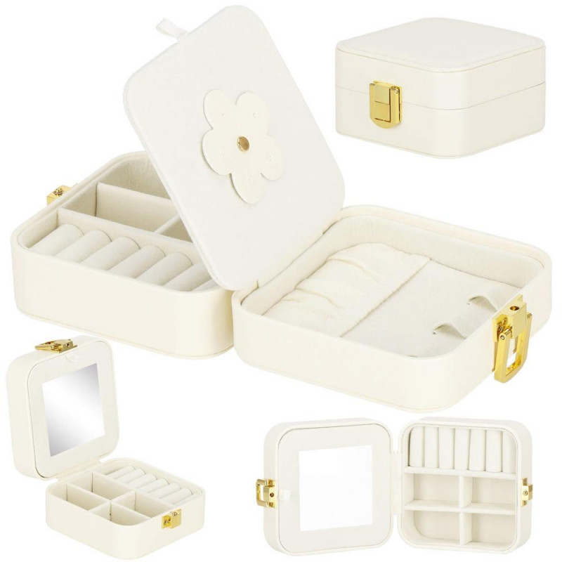 cele patru compartimente sunt modulare Fiecare femeie iubeste bijuteriile. Le poate purta in fiecare zi, la petreceri, la ocazii speciale in doi. Dar unde sa le pastram, astfel incat sa nu se piarda sau sa se incurce? O cutie de bijuterii este o idee grozava pentru depozitarea accesoriilor valoroase! Cu ajutorul ei, totul va fi intotdeauna la locul lui. Cutia de bijuterii va va permite sa va organizati corespunzator locul pentru accesoriile de styling. Isi va gasi locul intr-un dulap, pe o masuta de toaleta sau pe o comoda. Avand toate bijuteriile preferate intr-un singur loc, puteti uita de cautarea unui alt cercel care s-a pierdut pe undeva sau sa desfaci colierul. Atunci cand plecati intr-o calatorie lunga, merita sa va echipati cu un organizator de bijuterii, astfel incat sa nu se piarda nimic atunci cand despachetati. Datorita dimensiunii sale compacte, se va potrivi cu usurinta si in bagajul dumneavoastra.