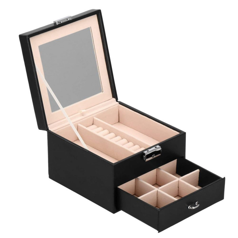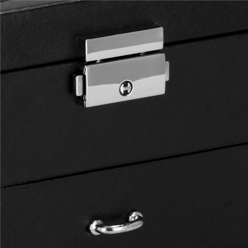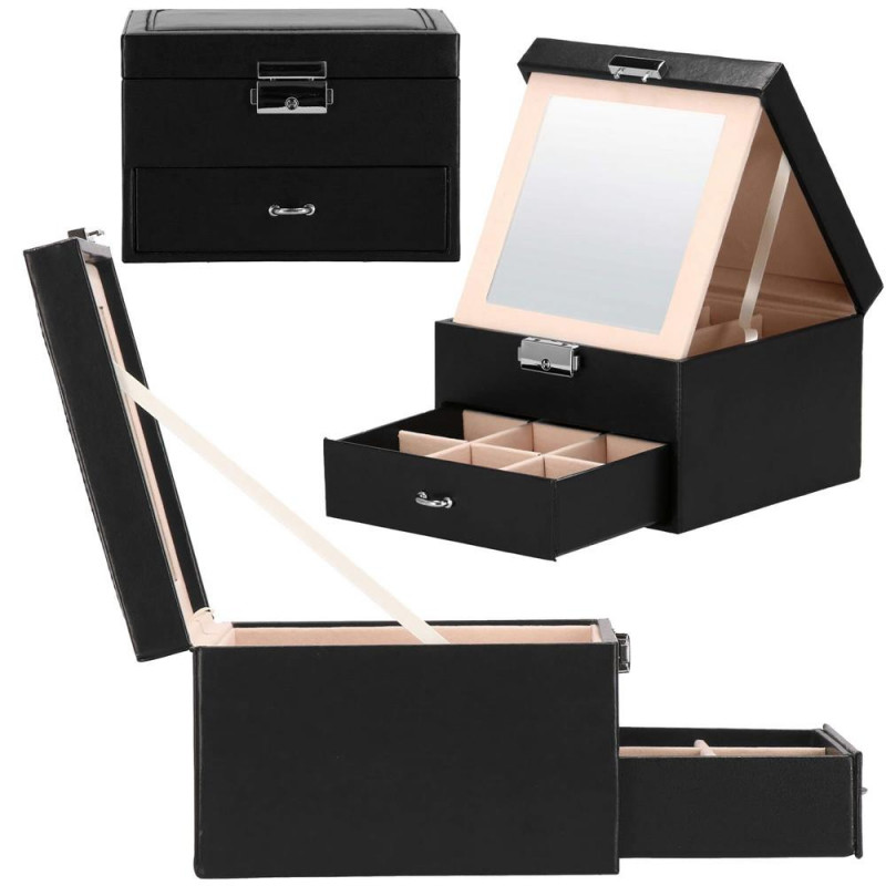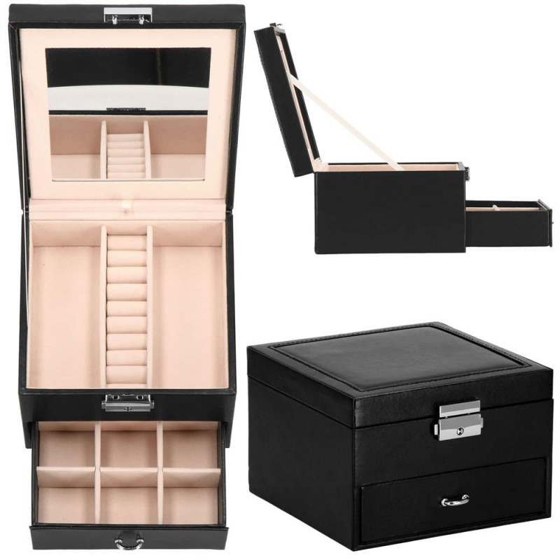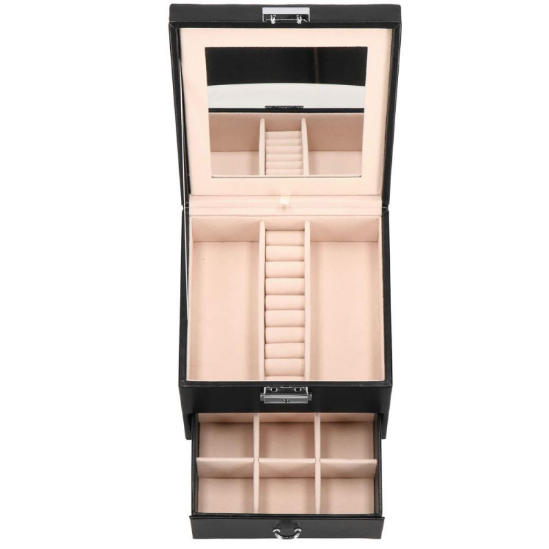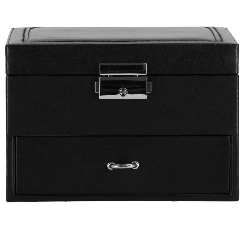 LOCUL PERFECT PENTRU BIJUTERII Fiecare femeie iubeste bijuteriile. Le poate purta in fiecare zi, la petreceri, la ocazii speciale in doi. Dar unde sa le pastrezi pentru ca nimic sa nu se piarda si sa se incurce? O cutie de bijuterii este o idee grozava pentru depozitarea accesoriilor valoroase! Cu ajutorul ei, totul va fi intotdeauna la locul lui. Cutia de bijuterii va va permite sa organizati corect locul pentru accesoriile de styling. Isi va gasi locul in dulap, masa de toaleta sau comoda. Avand toate bijuteriile tale preferate intr-un singur loc, poti uita sa cauti un al doilea cercel care s-a ratacit pe undeva sau sa desfaci colierul.Cutia mare are o deschidere foarte intuitiva. Cu toate acestea, daca nu doriti ca niciunul dintre membrii gospodariei sa poata deschide cutia cu continutul valoros, inchideti-o cu o cheie pe care o puteti purta cu dvs. peste tot! In plus, la deschiderea acestuia, nu trebuie sa va faceti griji cu privire la inchiderea automata a carcasei, pe una dintre laturile acesteia existand o ranforsare suplimentara care mentine capacul stabil in pozitie verticala. SPECIFICATII