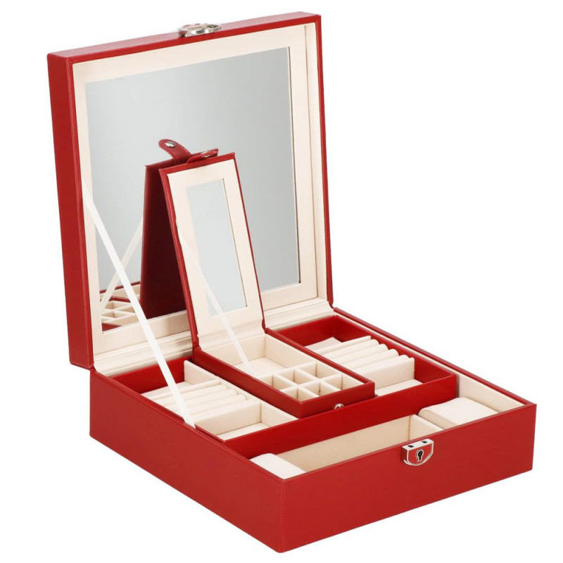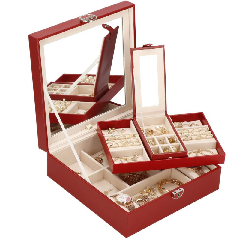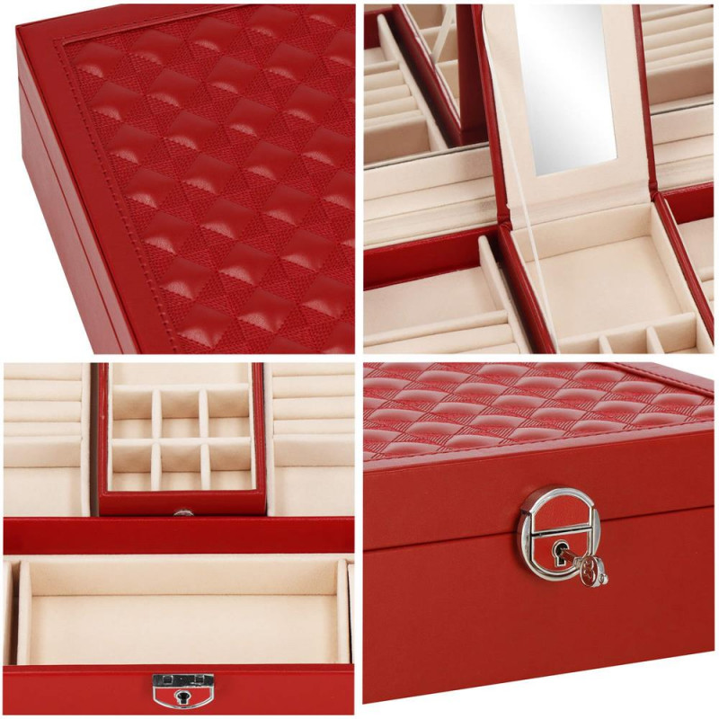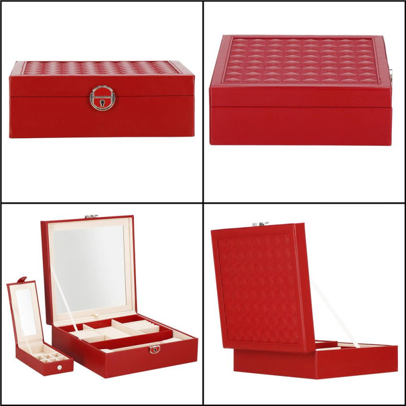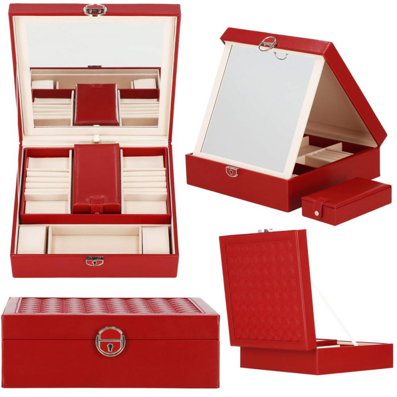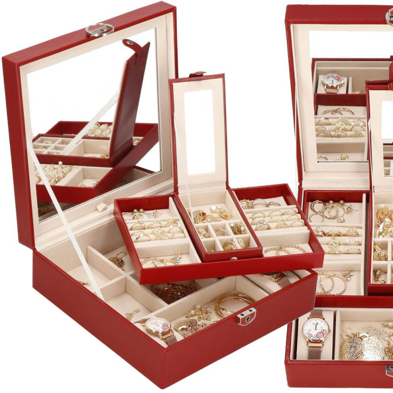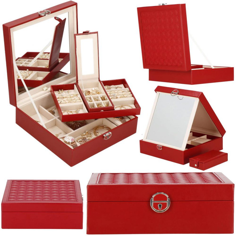 setul include: o cheie pentru a asigura securitatea cutiei Fiecare femeie iubeste bijuteriile. Le poate purta in fiecare zi, la petreceri, la ocazii speciale in doi. Dar unde sa le pastram, astfel incat sa nu se piarda sau sa se incurce? O cutie de bijuterii este o idee grozava pentru depozitarea accesoriilor valoroase! Cu ajutorul ei, totul va fi intotdeauna la locul lui. Cutia de bijuterii va va permite sa va organizati corespunzator locul pentru accesoriile de styling. Isi va gasi locul intr-un dulap, pe o masuta de toaleta sau pe o comoda. Avand toate bijuteriile preferate intr-un singur loc, puteti uita de cautarea unui alt cercel care s-a pierdut pe undeva sau sa desfaci colierul. Atunci cand plecati intr-o calatorie lunga, merita sa va echipati cu un organizator de bijuterii, astfel incat sa nu se piarda nimic atunci cand despachetati. Datorita dimensiunii sale compacte, se va potrivi cu usurinta si in bagajul dumneavoastra.