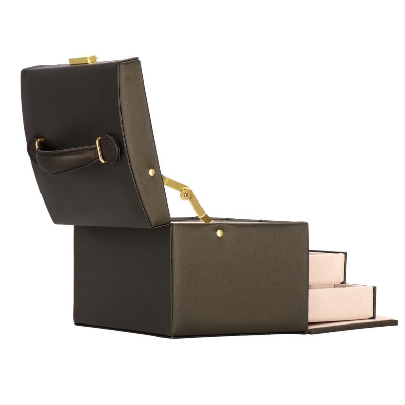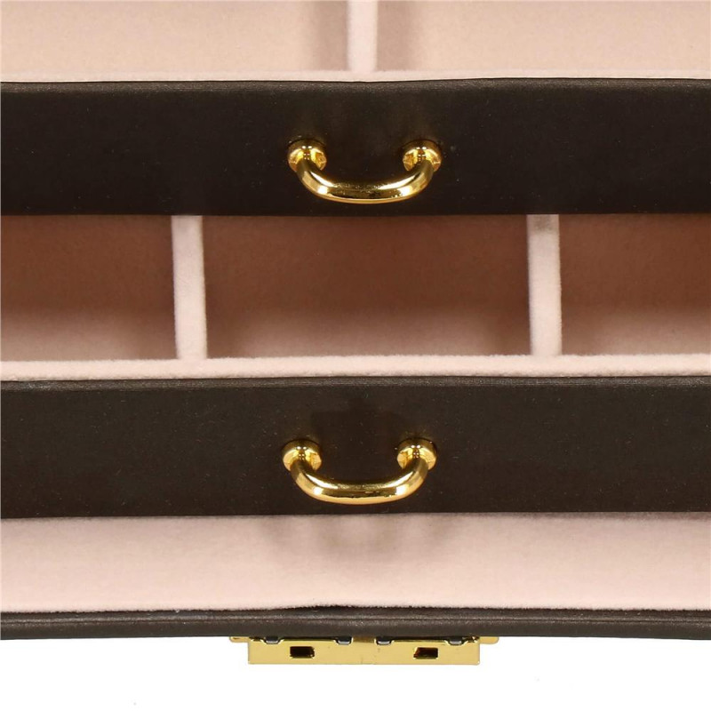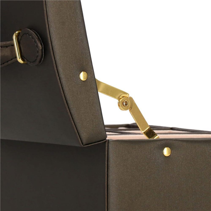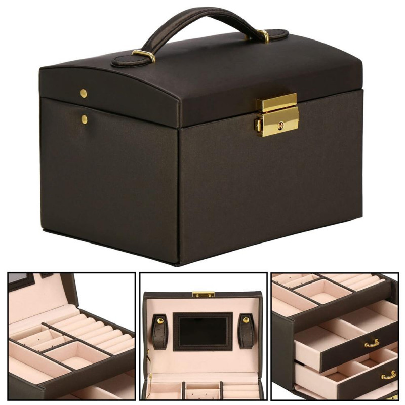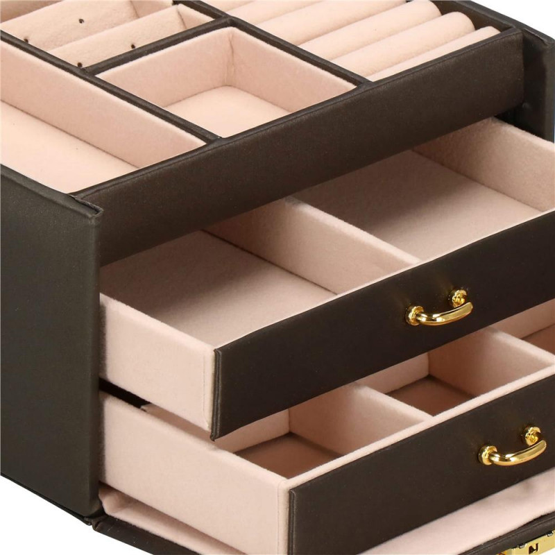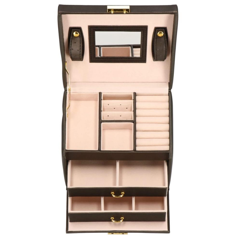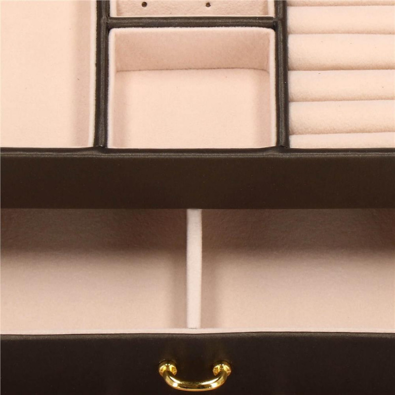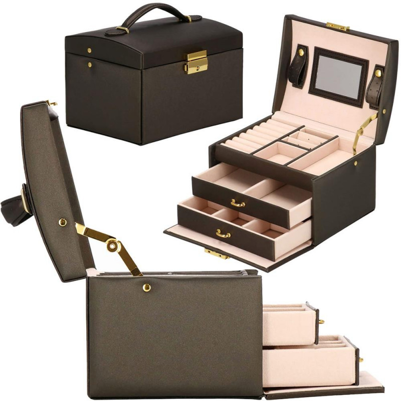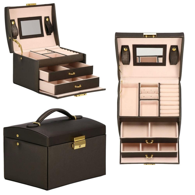 LOCUL PERFECT PENTRU BIJUTERII Fiecare femeie iubeste bijuteriile. Le poate purta in fiecare zi, la petreceri, la ocazii speciale in doi. Dar unde sa le pastrezi pentru ca nimic sa nu se piarda si sa se incurce? O cutie de bijuterii este o idee grozava pentru depozitarea accesoriilor valoroase! Cu ajutorul ei, totul va fi intotdeauna la locul lui. Cutia de bijuterii va va permite sa organizati corect locul pentru accesoriile de styling. Isi va gasi locul in dulap, masa de toaleta sau comoda. Avand toate bijuteriile tale preferate intr-un singur loc, poti uita sa cauti un al doilea cercel care s-a ratacit pe undeva sau sa desfaci colierul.Cutia mare are o deschidere foarte intuitiva. Cu toate acestea, daca nu doriti ca niciunul dintre membrii gospodariei sa poata deschide cutia cu continutul valoros, inchideti-o cu o cheie pe care o puteti purta cu dvs. peste tot! In plus, la deschiderea acestuia, nu trebuie sa va faceti griji cu privire la inchiderea automata a carcasei, pe una dintre laturile acesteia existand o ranforsare suplimentara care mentine capacul stabil in pozitie verticala. SPECIFICATII