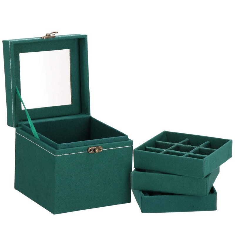 LOCUL PERFECT PENTRU BIJUTERII Fiecare femeie iubeste bijuteriile. Le poate purta in fiecare zi, la petreceri, la ocazii speciale in doi. Dar unde sa le pastrezi pentru ca nimic sa nu se piarda si sa se incurce? O cutie de bijuterii este o idee grozava pentru depozitarea accesoriilor valoroase! Cu ajutorul ei, totul va fi intotdeauna la locul lui. Cutia de bijuterii va va permite sa organizati corect locul pentru accesoriile de styling. Isi va gasi locul in dulap, masa de toaleta sau comoda. Avand toate bijuteriile tale preferate intr-un singur loc, poti uita sa cauti un al doilea cercel care s-a ratacit pe undeva sau sa desfaci colierul.Cutia mare are o deschidere foarte intuitiva. Cu toate acestea, daca nu doriti ca niciunul dintre membrii gospodariei sa poata deschide cutia cu continutul valoros, inchideti-o cu o cheie pe care o puteti purta cu dvs. peste tot! In plus, la deschiderea acestuia, nu trebuie sa va faceti griji cu privire la inchiderea automata a carcasei, pe una dintre laturile acesteia existand o ranforsare suplimentara care mentine capacul stabil in pozitie verticala. SPECIFICATII Culoare verde