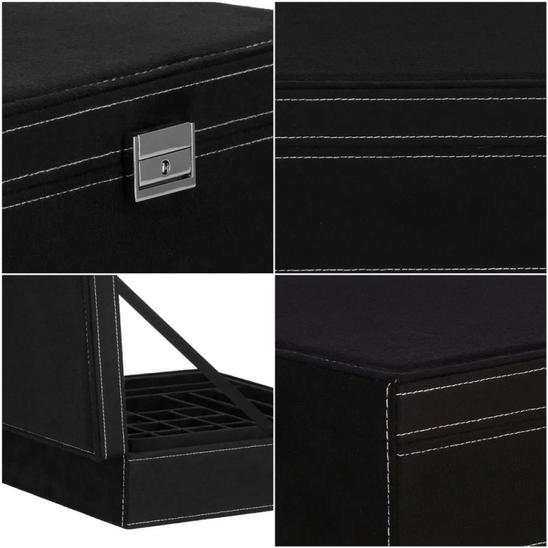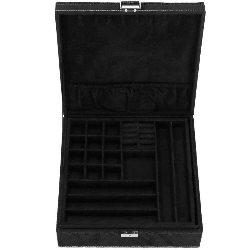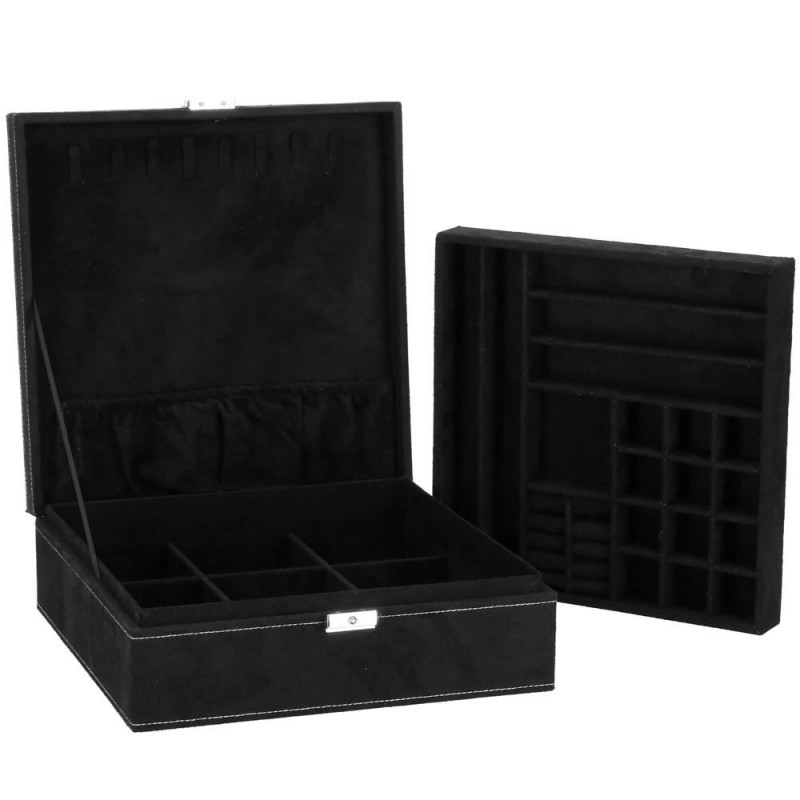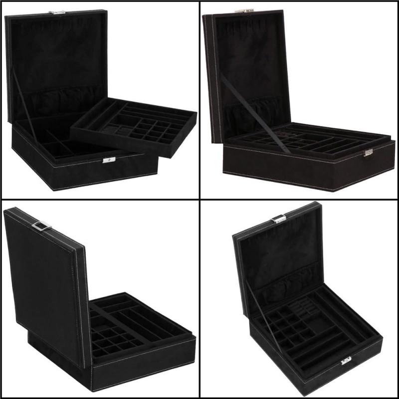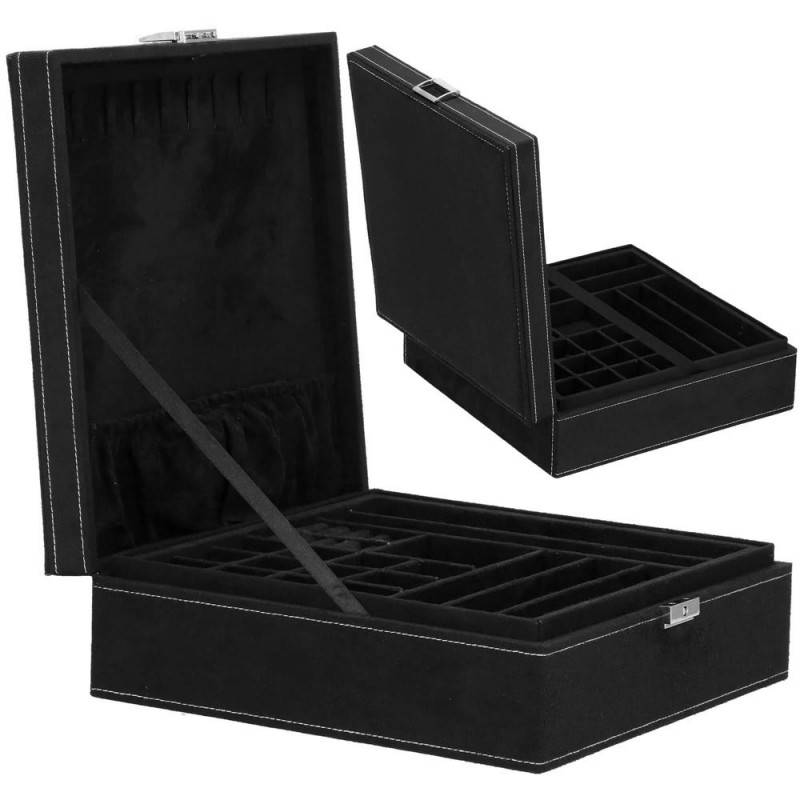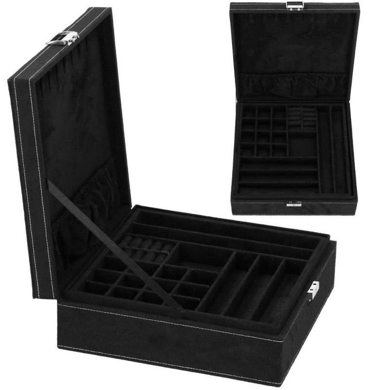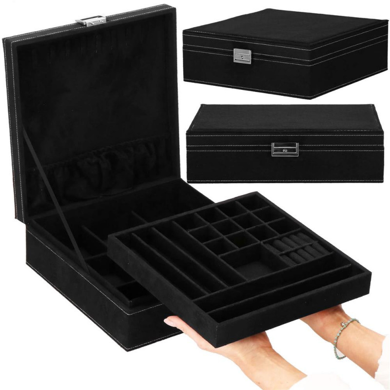 LOCUL PERFECT PENTRU BIJUTERII Fiecare femeie iubeste bijuteriile. Le poate purta in fiecare zi, la petreceri, la ocazii speciale in doi. Dar unde sa le pastrezi pentru ca nimic sa nu se piarda si sa se incurce? O cutie de bijuterii este o idee grozava pentru depozitarea accesoriilor valoroase! Cu ajutorul ei, totul va fi intotdeauna la locul lui. Cutia de bijuterii va va permite sa organizati corect locul pentru accesoriile de styling. Isi va gasi locul in dulap, masa de toaleta sau comoda. Avand toate bijuteriile tale preferate intr-un singur loc, poti uita sa cauti un al doilea cercel care s-a ratacit pe undeva sau sa desfaci colierul.Cutia mare are o deschidere foarte intuitiva. Cu toate acestea, daca nu doriti ca niciunul dintre membrii gospodariei sa poata deschide cutia cu continutul valoros, inchideti-o cu o cheie pe care o puteti purta cu dvs. peste tot! In plus, la deschiderea acestuia, nu trebuie sa va faceti griji cu privire la inchiderea automata a carcasei, pe una dintre laturile acesteia existand o ranforsare suplimentara care mentine capacul stabil in pozitie verticala. SPECIFICATII