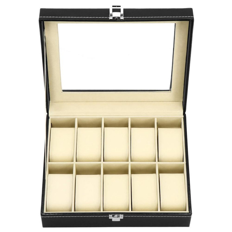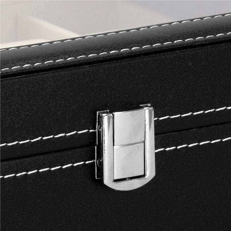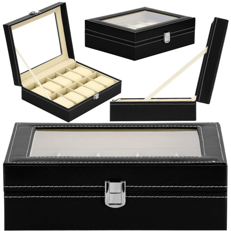 UN LOC ELEGANT SI PRACTIC PENTRU ACCESORII SI CEASURI Fiecare dintre noi - atat femei, cat si barbati, avem ceasuri, bratari si din ce in ce mai des bratari fitness si ceasuri inteligente in colectia de bijuterii si accesorii. Cel mai adesea, aceste articole sunt depozitate in locuri aleatorii si sunt adesea zgariate sau pur si simplu greu de gasit. Solutia ideala si din ce in ce mai populara sunt cutiile de depozitare dedicate ceasurilor si bijuteriilor. Lasa accesoriile sa iti exprime stilul, iar alegerea lor in fiecare dimineata va fi mai usoara. DESIGN EXCLUSIV Carcasa cutiei pentru ceasuri este realizata cu atentie la cele mai mici detalii. Se prezinta foarte eficient, elegant si pe langa functia sa cunoscuta, va fi fara indoiala un decor atractiv intr-o forma clasica, care va atrage privirea si va decora imprejurimile. Organizator sub forma unei cutii solide, in interior are o captuseala din material velur extrem de moale si delicat la atingere. In interiorul compartimentelor se gasesc perne, modelate pentru a gazdui bratari si curele. Fiecare ceas isi va gasi locul si datorita interiorului impartit in compartimente, nu se va freca de celelalte si nu se va zgaria. Puteti plasa cele mai valoroase accesorii in ele.Daca nu ai suficiente ceasuri pentru a umple interiorul casetei, poti scoate pernele dedicate formei de ceasuri si bratari si le poti folosi ca compartimente pentru alte accesorii - butoni, inele, cercei sau pandantive. AVANTAJELE PRODUSULUI Produs de clasa - se distinge prin calitatea sa comparativ cu oferte similare Perfect pentru un cadou - atat pentru femei, cat si pentru barbati Fabricat din cele mai bune materiale Prezentarea extrem de eficienta Clasic in forma sa Decorat cu accesorii de finete si elegante Captuseala din velur extrem de moale si placuta la atingere Perne practice detasabile - pentru ca ceasurile si bratarile tale sa isi pastreze forma si sa arate impecabil Va permite sa pastrati ordinea printre accesorii Este modular - scoate pernele din ea si foloseste compartimentele pentru alte accesorii PARAMETRII: material: mdf + piele ecologicainterior cutie din piele intoarsaculoare cutie: negruculoare interior: cremculoare inchizator: argintiuculoare cusaturi: albpentru 10 ceasuritip de inchidere: stift despicat cu zavor Dimensiuni cutie inchisa