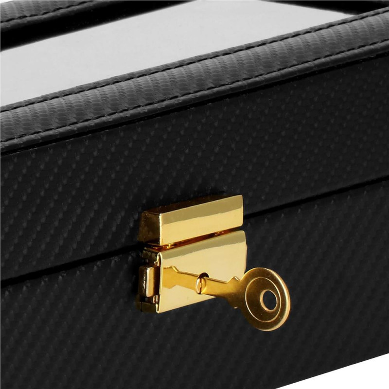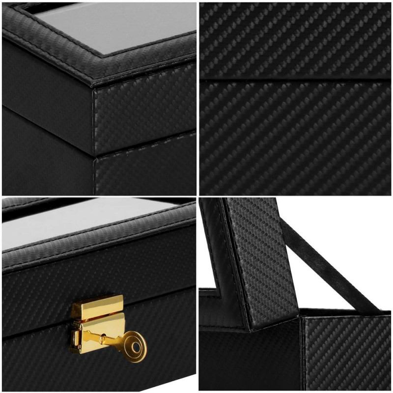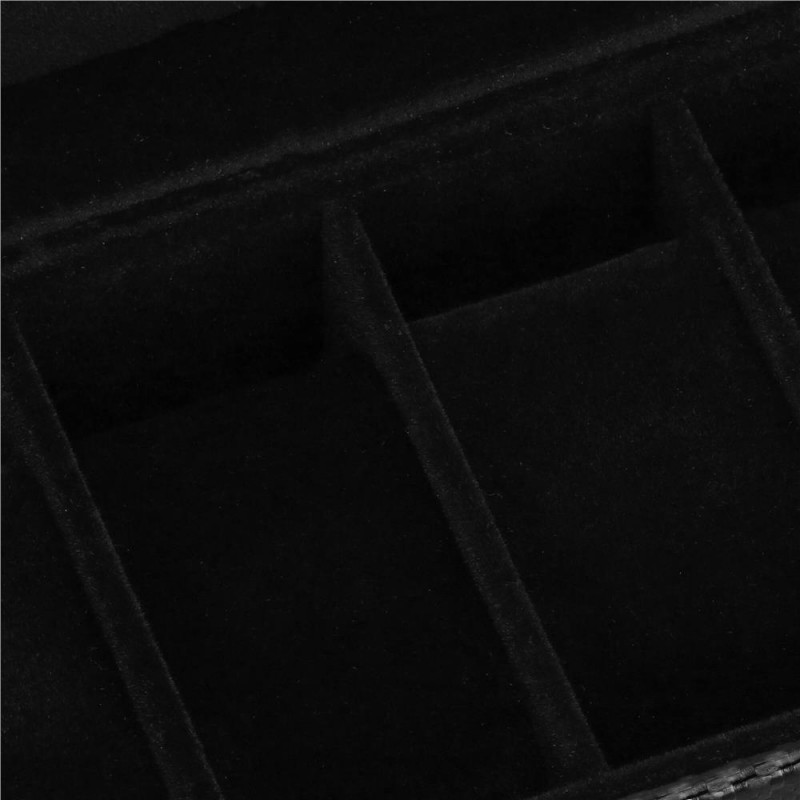 UN LOC ELEGANT SI PRACTIC PENTRU ACCESORII SI CEASURI Fiecare dintre noi - atat femei, cat si barbati, avem ceasuri, bratari si din ce in ce mai des bratari fitness si ceasuri inteligente in colectia de bijuterii si accesorii. Cel mai adesea, aceste articole sunt depozitate in locuri aleatorii si sunt adesea zgariate sau pur si simplu greu de gasit. Solutia ideala si din ce in ce mai populara sunt cutiile de depozitare dedicate ceasurilor si bijuteriilor. Lasa accesoriile sa iti exprime stilul, iar alegerea lor in fiecare dimineata va fi mai usoara. DESIGN EXCLUSIV Carcasa cutiei pentru ceasuri este realizata cu atentie la cele mai mici detalii. Se prezinta foarte eficient, elegant si pe langa functia sa cunoscuta, va fi fara indoiala un decor atractiv intr-o forma clasica, care va atrage privirea si va decora imprejurimile. Organizator sub forma unei cutii solide, in interior are o captuseala din material velur extrem de moale si delicat la atingere. In interiorul compartimentelor se gasesc perne, modelate pentru a gazdui bratari si curele. Fiecare ceas isi va gasi locul si datorita interiorului impartit in compartimente, nu se va freca de celelalte si nu se va zgaria. Puteti plasa cele mai valoroase accesorii in ele.Daca nu ai suficiente ceasuri pentru a umple interiorul casetei, poti scoate pernele dedicate formei de ceasuri si bratari si le poti folosi ca compartimente pentru alte accesorii - butoni, inele, cercei sau pandantive. AVANTAJELE PRODUSULUI Produs de clasa - se distinge prin calitatea sa comparativ cu oferte similare Perfect pentru un cadou - atat pentru femei, cat si pentru barbati Fabricat din cele mai bune materiale Prezentarea extrem de eficienta Clasic in forma sa Decorat cu accesorii de finete si elegante Captuseala din velur extrem de moale si placuta la atingere Perne practice detasabile - pentru ca ceasurile si bratarile tale sa isi pastreze forma si sa arate impecabil Va permite sa pastrati ordinea printre accesorii Este modular - scoate pernele din ea si foloseste compartimentele pentru alte accesorii PARAMETRII: Culoare neagra