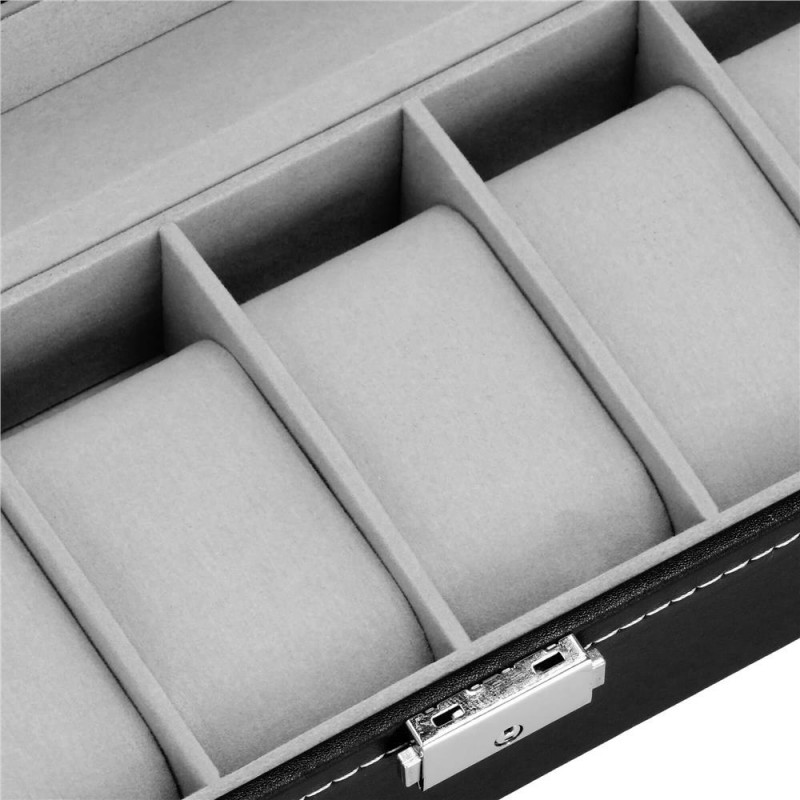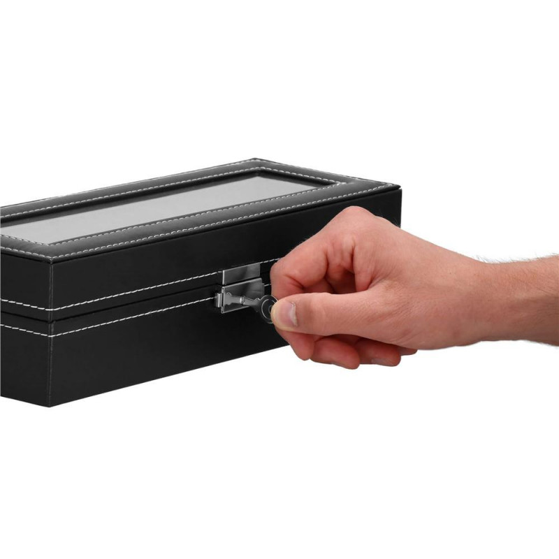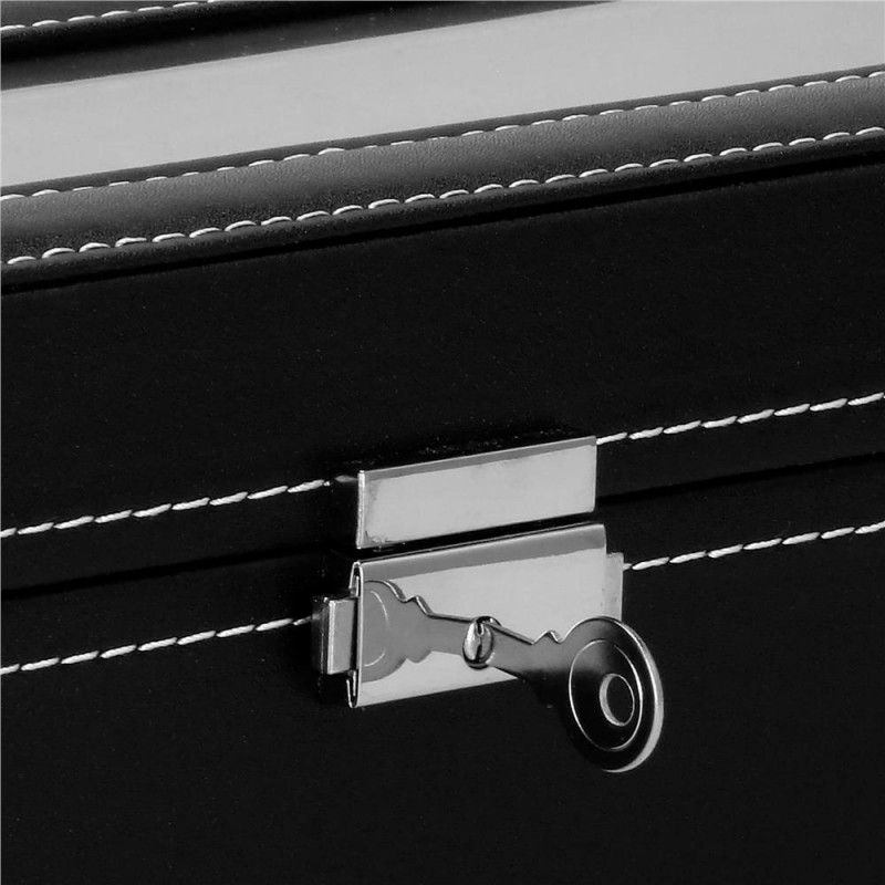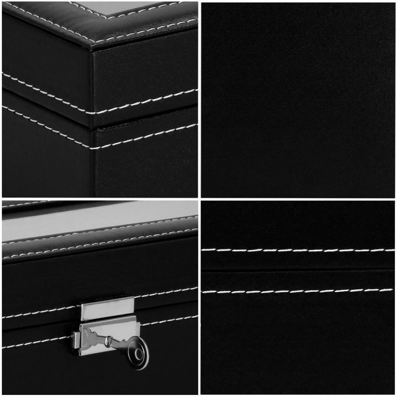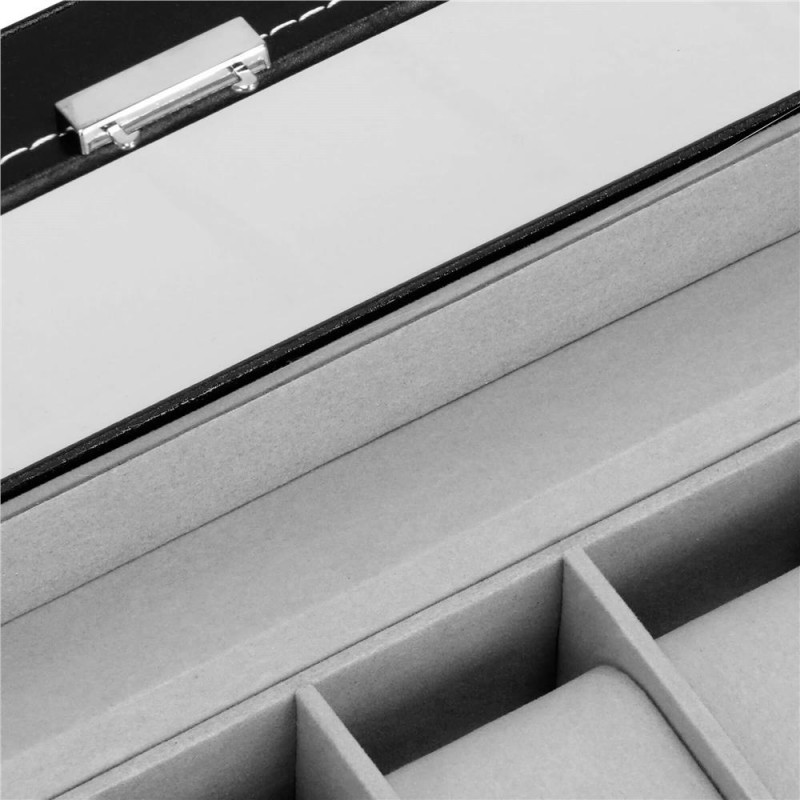 UN LOC ELEGANT SI PRACTIC PENTRU ACCESORII SI CEASURI Fiecare dintre noi - atat femei, cat si barbati, avem ceasuri, bratari si din ce in ce mai des bratari fitness si ceasuri inteligente in colectia de bijuterii si accesorii. Cel mai adesea, aceste articole sunt depozitate in locuri aleatorii si sunt adesea zgariate sau pur si simplu greu de gasit. Solutia ideala si din ce in ce mai populara sunt cutiile de depozitare dedicate ceasurilor si bijuteriilor. Lasa accesoriile sa iti exprime stilul, iar alegerea lor in fiecare dimineata va fi mai usoara. DESIGN EXCLUSIV Carcasa cutiei pentru ceasuri este realizata cu atentie la cele mai mici detalii. Se prezinta foarte eficient, elegant si pe langa functia sa cunoscuta, va fi fara indoiala un decor atractiv intr-o forma clasica, care va atrage privirea si va decora imprejurimile. Organizator sub forma unei cutii solide, in interior are o captuseala din material velur extrem de moale si delicat la atingere. In interiorul compartimentelor se gasesc perne, modelate pentru a gazdui bratari si curele. Fiecare ceas isi va gasi locul si datorita interiorului impartit in compartimente, nu se va freca de celelalte si nu se va zgaria. Puteti plasa cele mai valoroase accesorii in ele.Daca nu ai suficiente ceasuri pentru a umple interiorul casetei, poti scoate pernele dedicate formei de ceasuri si bratari si le poti folosi ca compartimente pentru alte accesorii - butoni, inele, cercei sau pandantive. AVANTAJELE PRODUSULUI Produs de clasa - se distinge prin calitatea sa comparativ cu oferte similare Perfect pentru un cadou - atat pentru femei, cat si pentru barbati Fabricat din cele mai bune materiale Prezentarea extrem de eficienta Clasic in forma sa Decorat cu accesorii de finete si elegante Captuseala din velur extrem de moale si placuta la atingere Perne practice detasabile - pentru ca ceasurile si bratarile tale sa isi pastreze forma si sa arate impecabil Va permite sa pastrati ordinea printre accesorii Este modular - scoate pernele din ea si foloseste compartimentele pentru alte accesorii PARAMETRII: material: mdf + piele ecologicainterior cutie din piele intoarsaculoare cutie: negruculoare interioara: griculoare inchizator: argintiuculoare cusaturi: albpentru 6 ceasuriinchidere: cu cheie Dimensiuni cutie inchisa