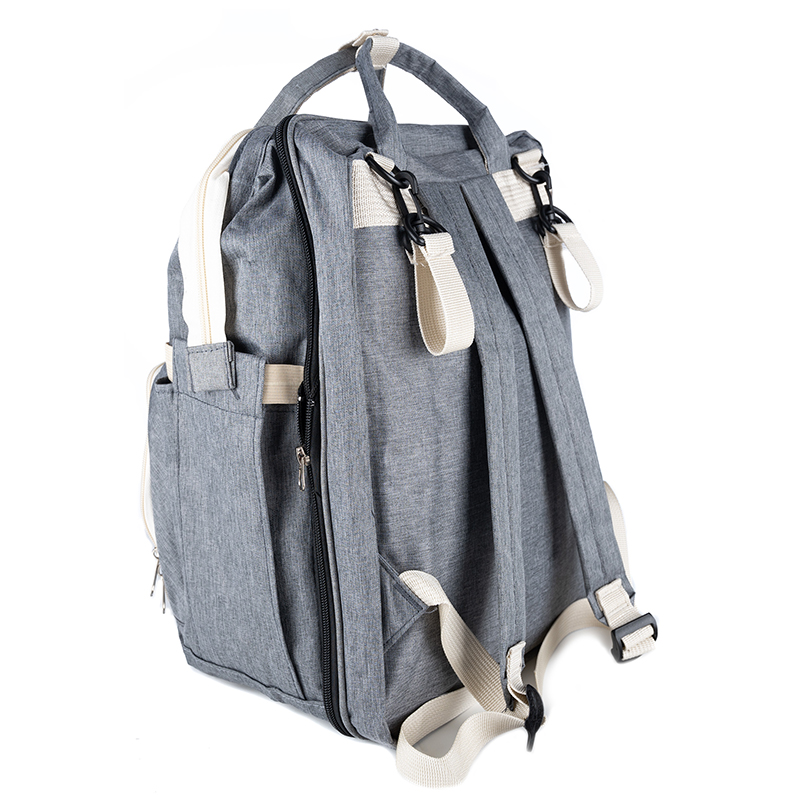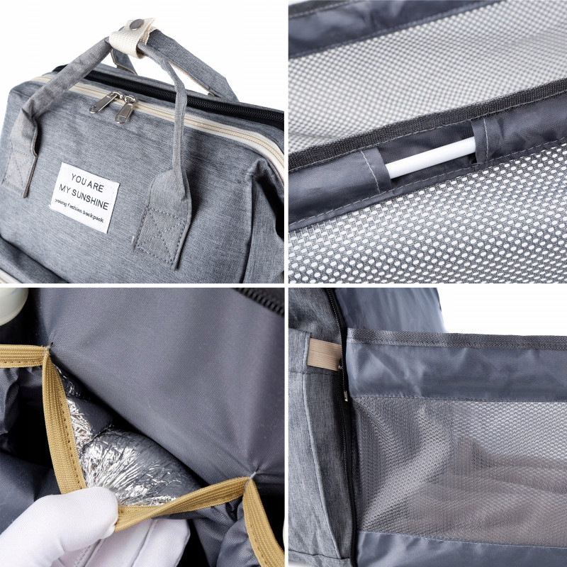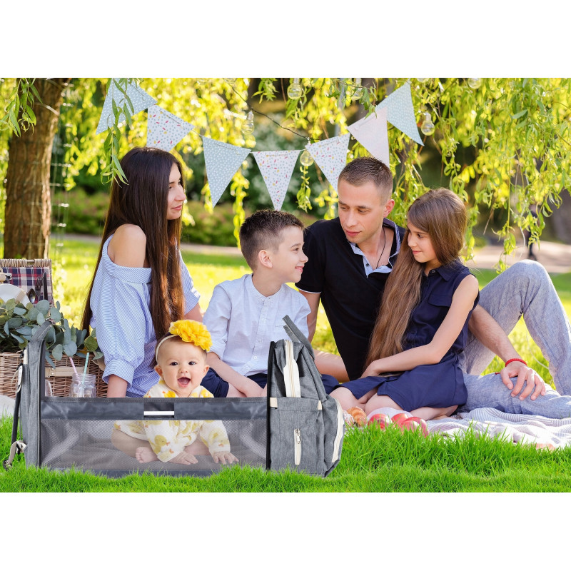 3x buzunare interne in compartimentul principal al rucsacului Prin urmare, se va dovedi utila nu numai ca o geanta practica pentru carucior pe care sa o agati de maner, poate fi folosita si ca rucsac atunci cand lasi caruciorul in masina, de exemplu, luand copilul in port-bebe. Odata ce sacul a fost desfasurat, avem un tarc portabil/copil portabil gata facut in care putem aseza confortabil si in siguranta copilul la nevoie. Setul include, de asemenea, un covoras practic pentru schimbatoare, care este intotdeauna util de avut la indemana . Acest lucru va permite sa luati cu dvs. biberoane, bauturi calde sau mancare pentru cel mic. Geanta este senzationala pentru toate tipurile de iesiri si excursii. Iti faci bagajul si esti gata sa te bucuri de vacanta. Trebuie sa-ti schimbi copilul sau poate ca a devenit somnoros? Desfaceti rucsacul si aranjati-l pur si simplu pe cel mic in el confortabil.