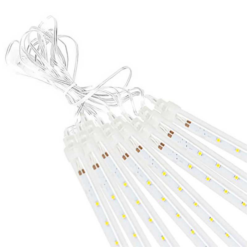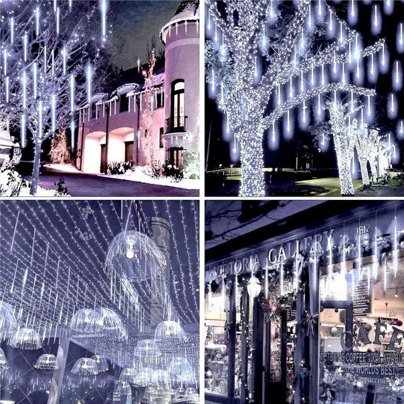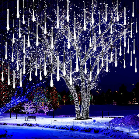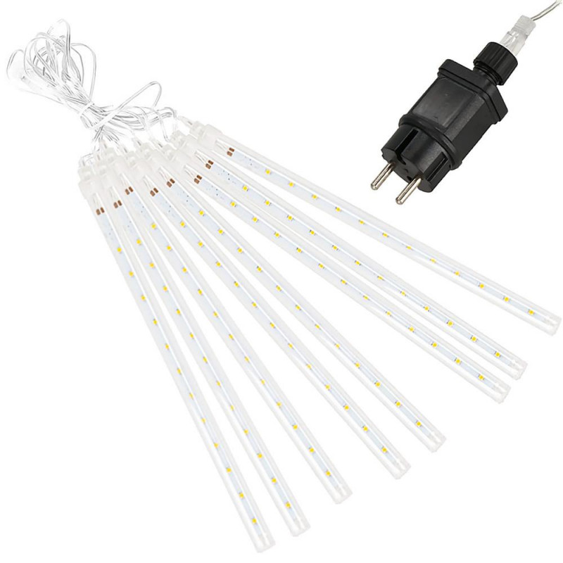 Ne apropiem de sarbatori... Lampile cu meteoriti arata grozav pe un pom de Craciun, pe arbustii din gradina sau usor agatate pe o balustrada de balcon. Sunt accentul perfect pentru a crea o atmosfera festiva in jurul tau. Efectul meteorilor in cadere este impresionant! Lasa-te purtat de atmosfera de sarbatoare si fa ca sarbatorile sa fie speciale pentru tine si familia ta. Lampile sunt de inalta calitate si le poti folosi atat in casa, cat si afara. Functioneaza excelent creand efectul caderii zapezii.Lampile sunt compatibile, ceea ce inseamna ca le puteti combina in seturi. Puteti combina pana la trei seturi de lumini.Conectorii ermetici au clasa de etanseitate IP44, ceea ce inseamna ca sunt adaptati pentru utilizare in exterior fara a fi nevoie de izolatie suplimentara. Butonul controlerului este sigilat. Sarma groasa de cupru este rezistenta la rupere sau la temperaturi scazute. PARAMETRII: Culoarea albnumar de meteoriti 8 bucdiametrul meteorit 11 mmdistanta dintre meteoriti este de aproximativ 40 cm Efect de lumina in cadere Lungimea cablu cu meteoriti 3mlungimea cablului de alimentare 2mlungime totala 5mlungimea meteoriti 30 cm144 lumini micro LEDsursa de alimentare 220-240v LED-uri cu economie de energie Alimentat electric Arderea unui LED nu opreste setul!Lampi pe fire de cupru durabile cu diametrul de 1,3 mm, rezistente la rupere Certificat CE, Ro HSClasa de etanseitate IP44 Utilizare externa si interna Posibilitatea de a conecta pana la 3 bucati de lanturi