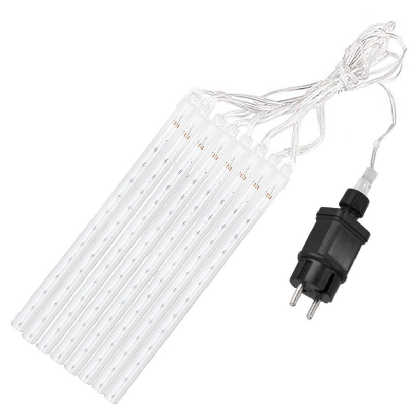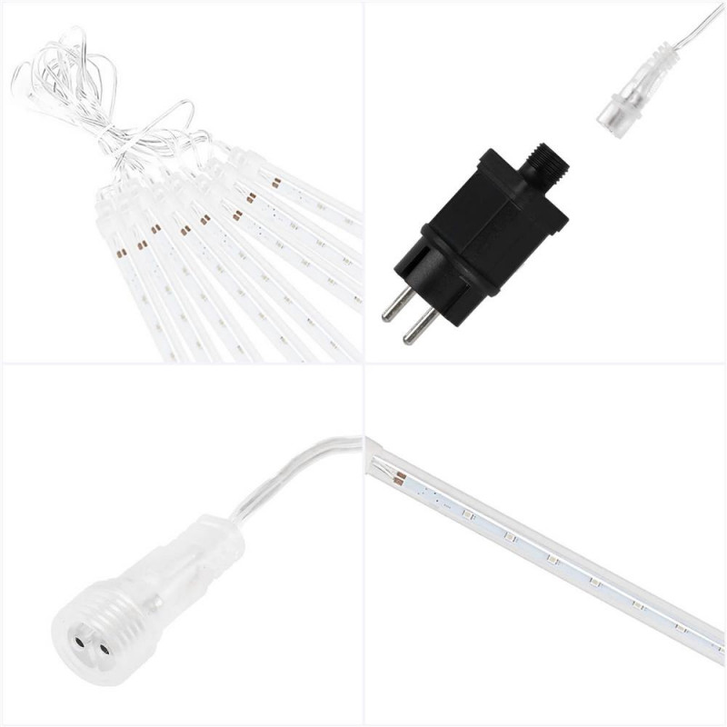 Ne apropiem de sarbatori... Lampile cu meteoriti arata grozav pe un pom de Craciun, pe arbustii din gradina sau usor agatate pe o balustrada de balcon. Sunt accentul perfect pentru a crea o atmosfera festiva in jurul tau. Efectul meteorilor in cadere este impresionant! Lasa-te purtat de atmosfera de sarbatoare si fa ca sarbatorile sa fie speciale pentru tine si familia ta. Lampile sunt de inalta calitate si le poti folosi atat in casa, cat si afara. Functioneaza excelent creand efectul caderii zapezii.Lampile sunt compatibile, ceea ce inseamna ca le puteti combina in seturi. Puteti combina pana la trei seturi de lumini.Conectorii ermetici au clasa de etanseitate IP44, ceea ce inseamna ca sunt adaptati pentru utilizare in exterior fara a fi nevoie de izolatie suplimentara. Butonul controlerului este sigilat. Sarma groasa de cupru este rezistenta la rupere sau la temperaturi scazute. PARAMETRII: Culoarea albastrunumar de meteoriti 8 bucdiametrul meteorit 11 mmdistanta dintre meteoriti este de aproximativ 40 cm Efect de lumina in cadere Lungimea cablu cu meteoriti 3mlungimea cablului de alimentare 2mlungime totala 5mlungimea meteoriti 30 cm144 lumini micro LEDsursa de alimentare 220-240v LED-uri cu economie de energie Alimentat electric Arderea unui LED nu opreste setul!Lampi pe fire de cupru durabile cu diametrul de 1,3 mm, rezistente la rupere Certificat CE, Ro HSClasa de etanseitate IP44 Utilizare externa si interna Posibilitatea de a conecta pana la 3 bucati de lanturi