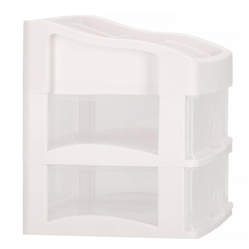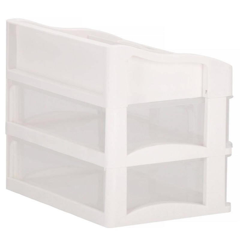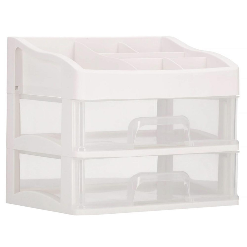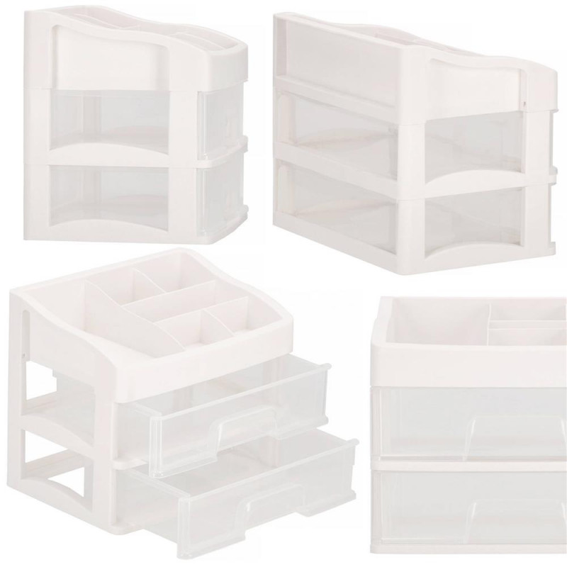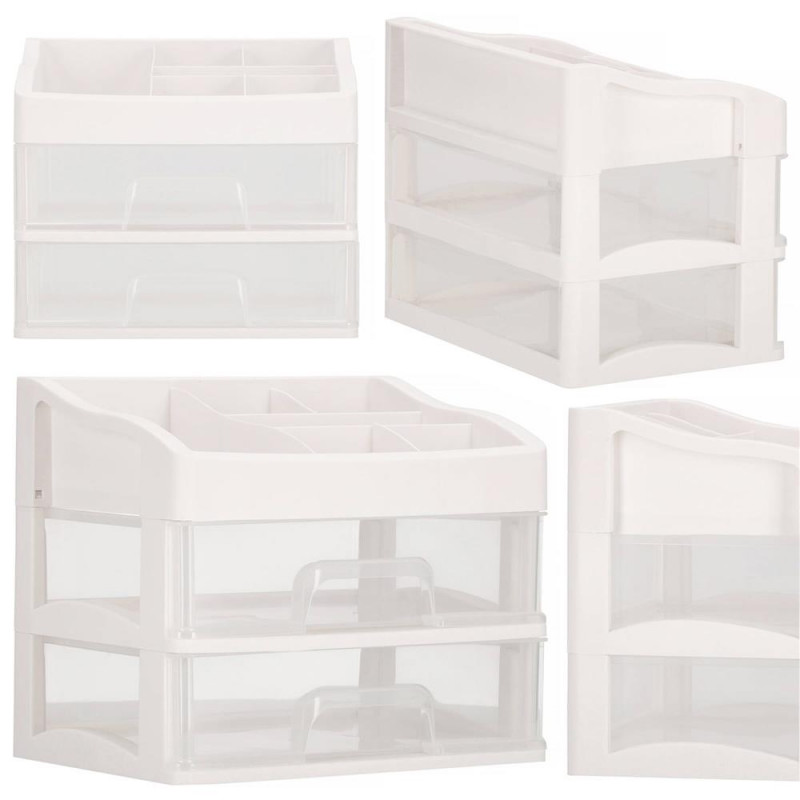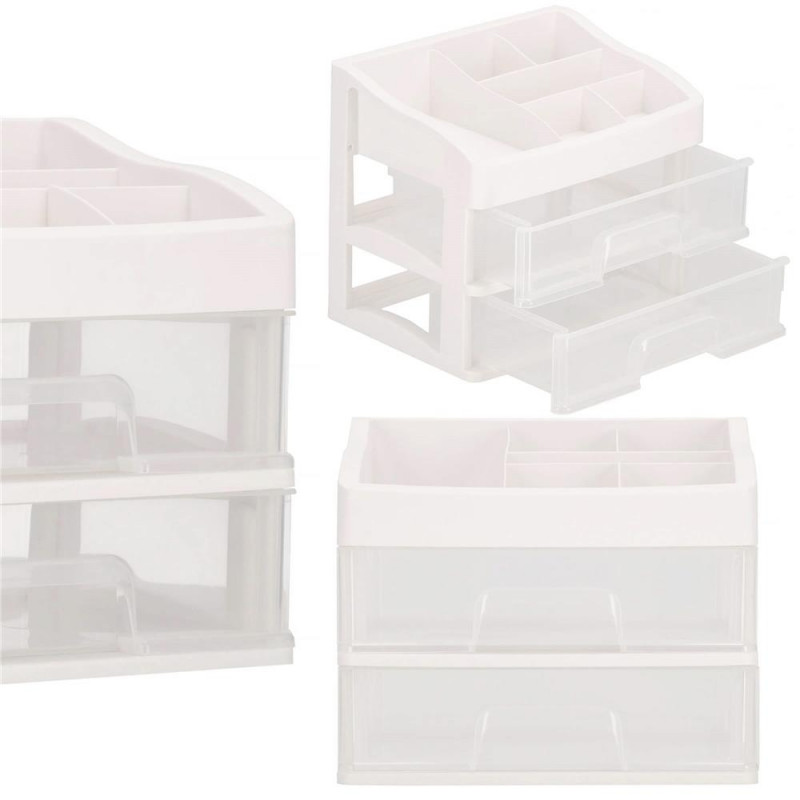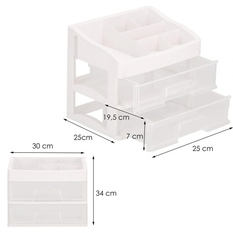 2x sertare transparente cu maner de aceeasi dimensiune (adancime: 19,5 cm, latime: 25, inaltime: 7 cm) Organizatoarele fac sarcinile zilnice incredibil de usoare si pastreaza lucrurile ordonate. Puteti uita deja de cautarea zilnica a rujului, a pudrei sau a altor produse cosmetice.