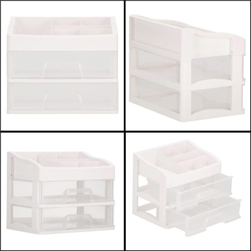 Pentru depozitarea suruburilor, cuielor, piulitelor si suruburilor Cutia este realizata in intregime din plastic. Materialul este foarte usor de pastrat curat, in cazul in care va varsati pudra sau bronzul, trebuie doar sa stergeti sertarele cu o carpa umeda. Designul are sertare si pereti transparenti, astfel incat sa aveti intotdeauna o vedere asupra accesoriilor depozitate. Chiar in partea superioara a organizatorului exista compartimente suplimentare in care puteti depozita accesorii mai mari, cum ar fi parfumurile. Designul cutiei a fost gandit cu atentie pentru a maximiza cantitatea de depozitare.